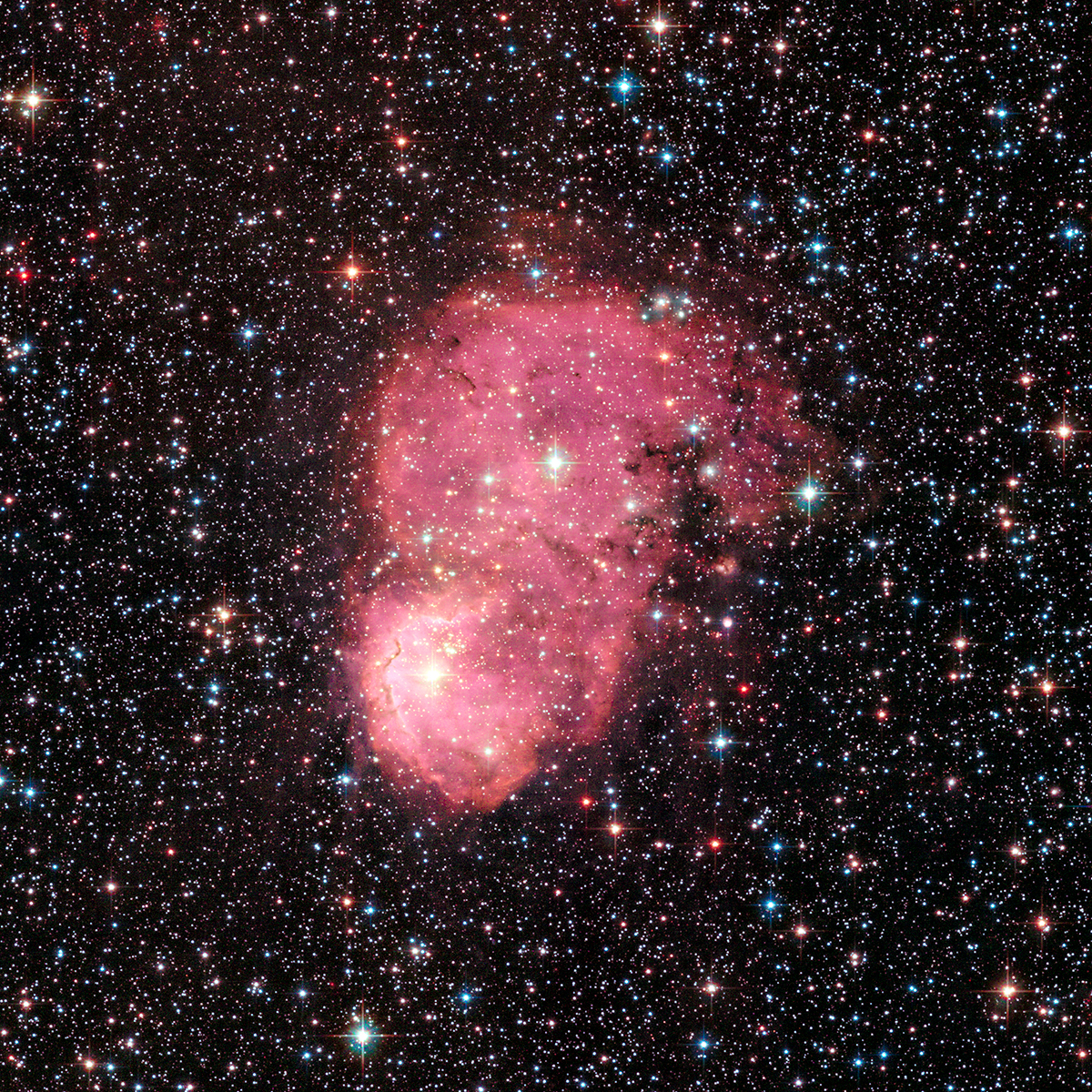 NGC 248: Růžolící dvojjedinost uprostřed sestřenice Mléčné dráhy