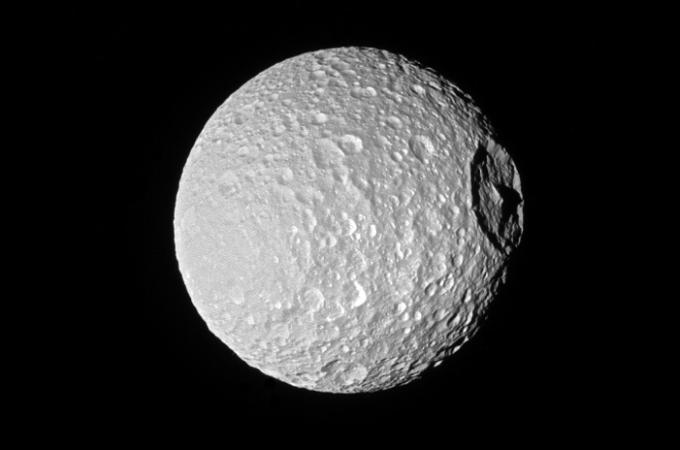 Saturnův měsíc Mimas: Ohromující hora uprostřed kráteru Hvězdy smrti