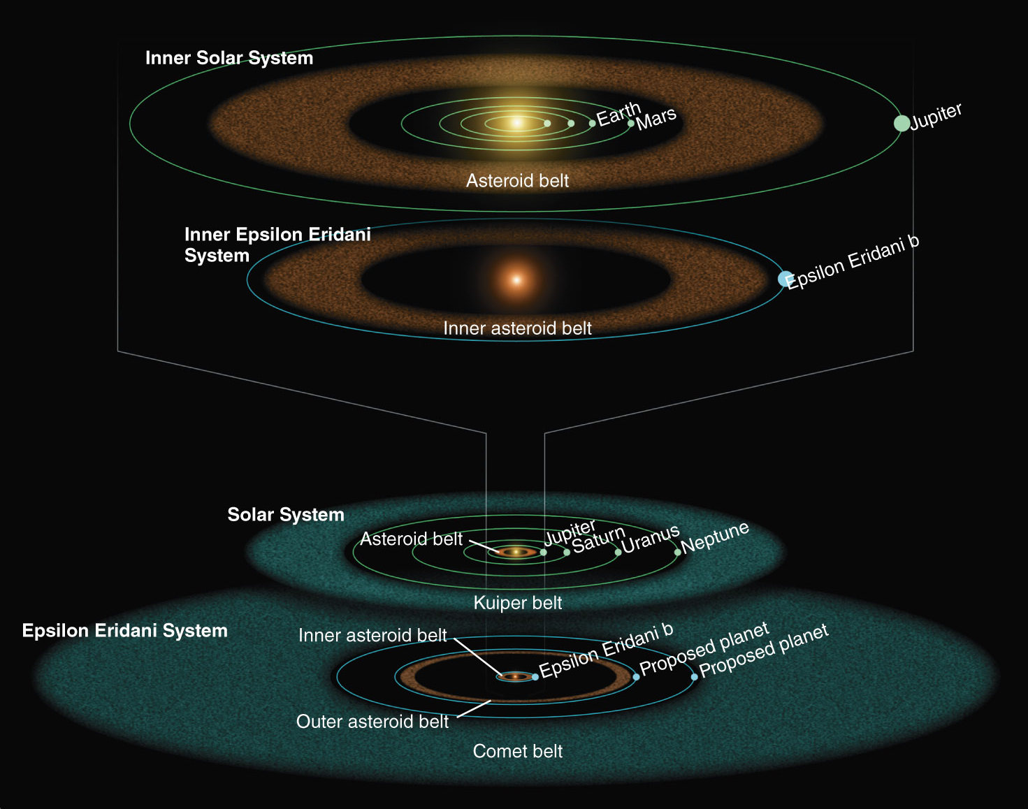 Kolem hvězdy, připomínající Slunce v rané části vývoje, jsou soustředěné dva pásy tvořené plynem, prachem a ledovým materiálem.