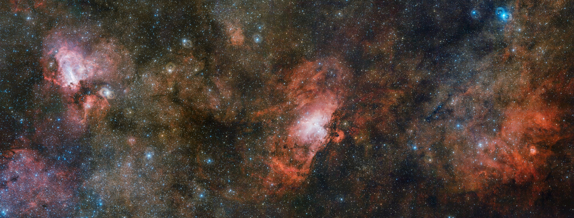 Dalekohled VST zachytil trojici působivých mlhovin na jednom snímku.