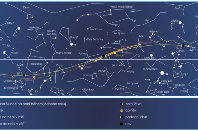 Noční obloha v září: Těsné setkání Merkuru a Marsu a podzimní rovnodennost