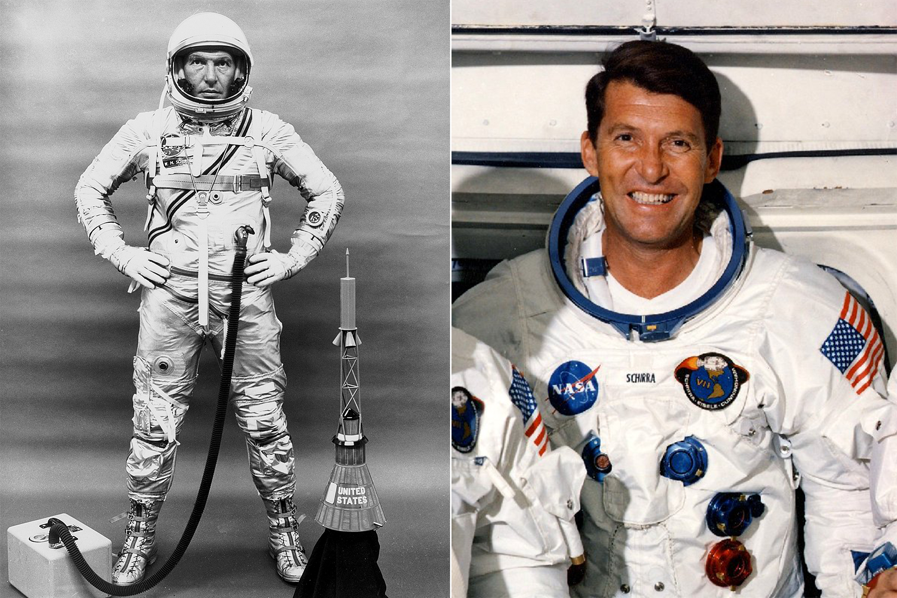 Walter Marty Schirra, Jr. (*12. března 1923 - † 3. května 2007) byl jediným Američanem, který absolvoval lety v kosmických lodích programů Mercury, Gemini a Apollo. (zdroj: Wikimedia Commons, NASA, volné dílo CC0)
