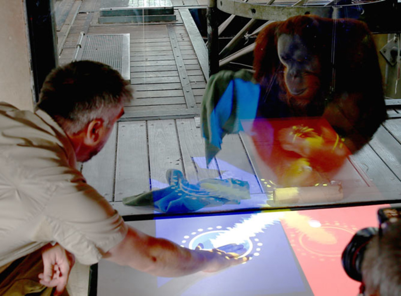 V melbournské zoo si návštěvníci mohou zahrát videohru s živými orangutany