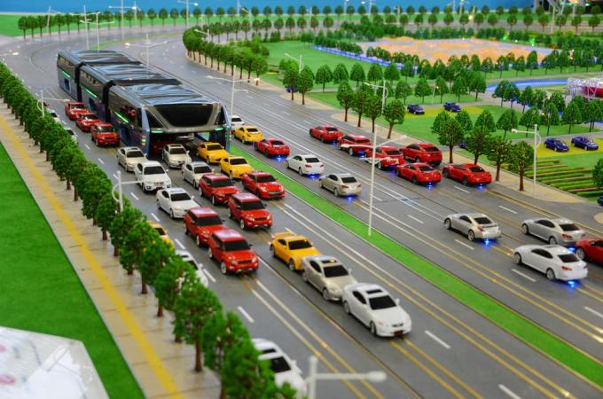 Je to autobus nebo pojízdný tunel? Originální řešení dopravy v Číně