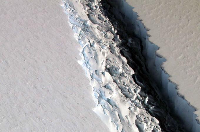 V antarktickém šelfovém ledovci Larsen C se rozevírá kolosální trhlina