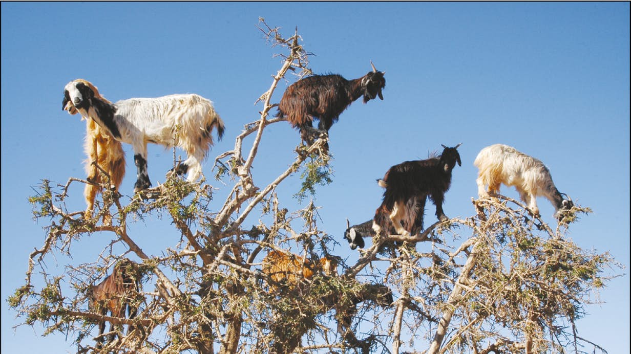Marocké šplhající kozy jsou na stromech jako doma