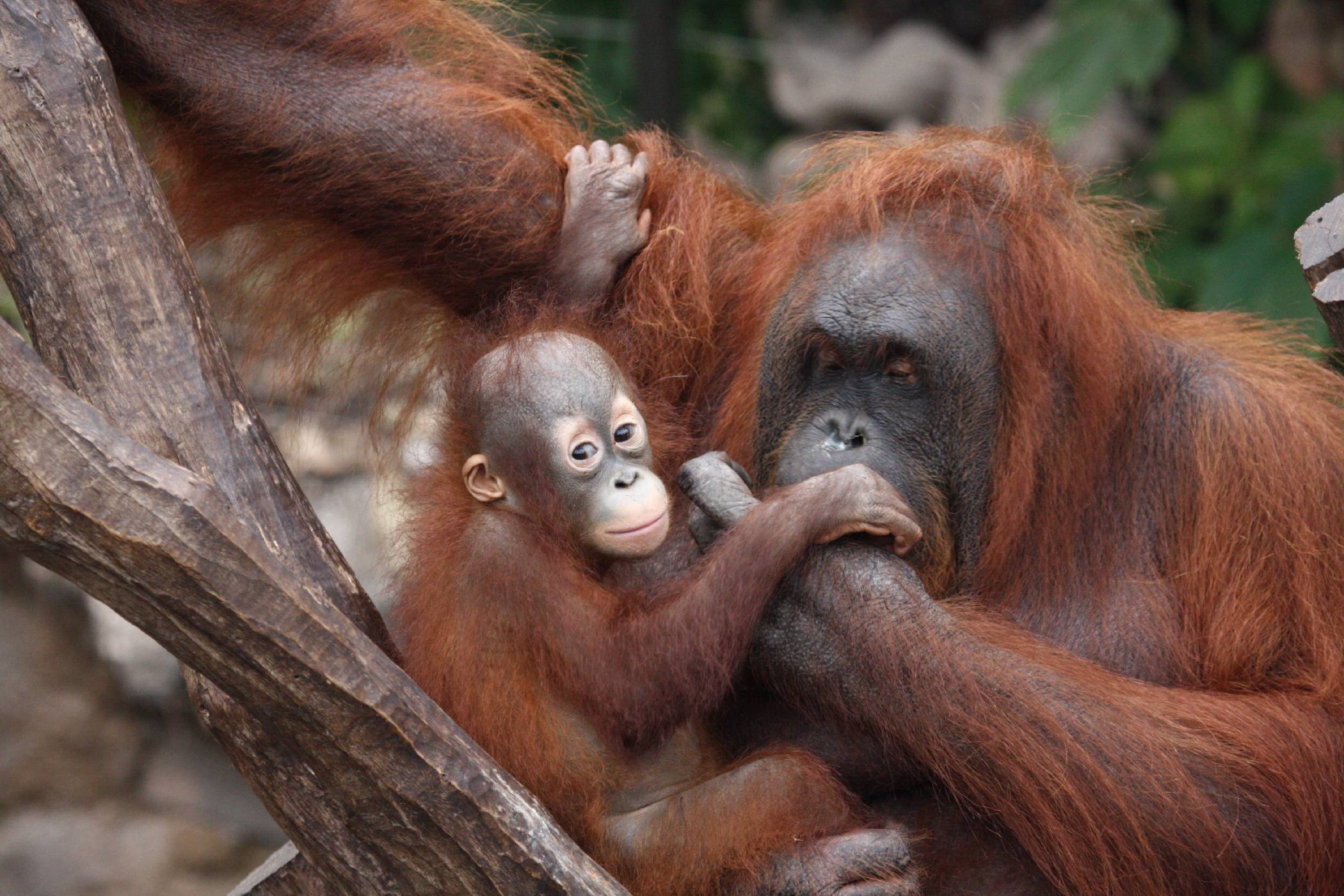 Červená místa označují výskyt orangutanů na území Malajsie a Indonésie