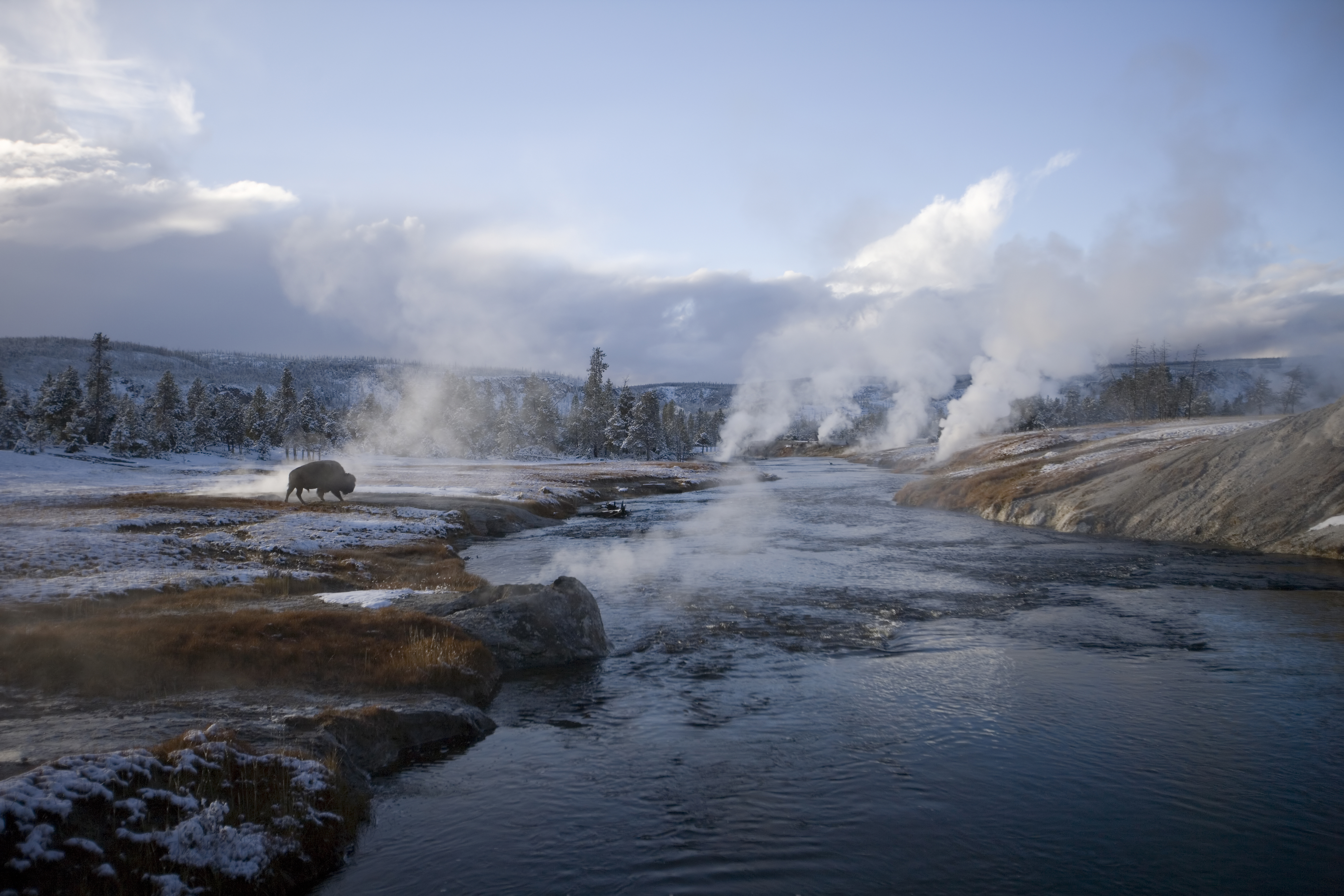 Zimní Yellowstone a osamělý bizon na cestě k napajedlu. (foto: Shutterstock)