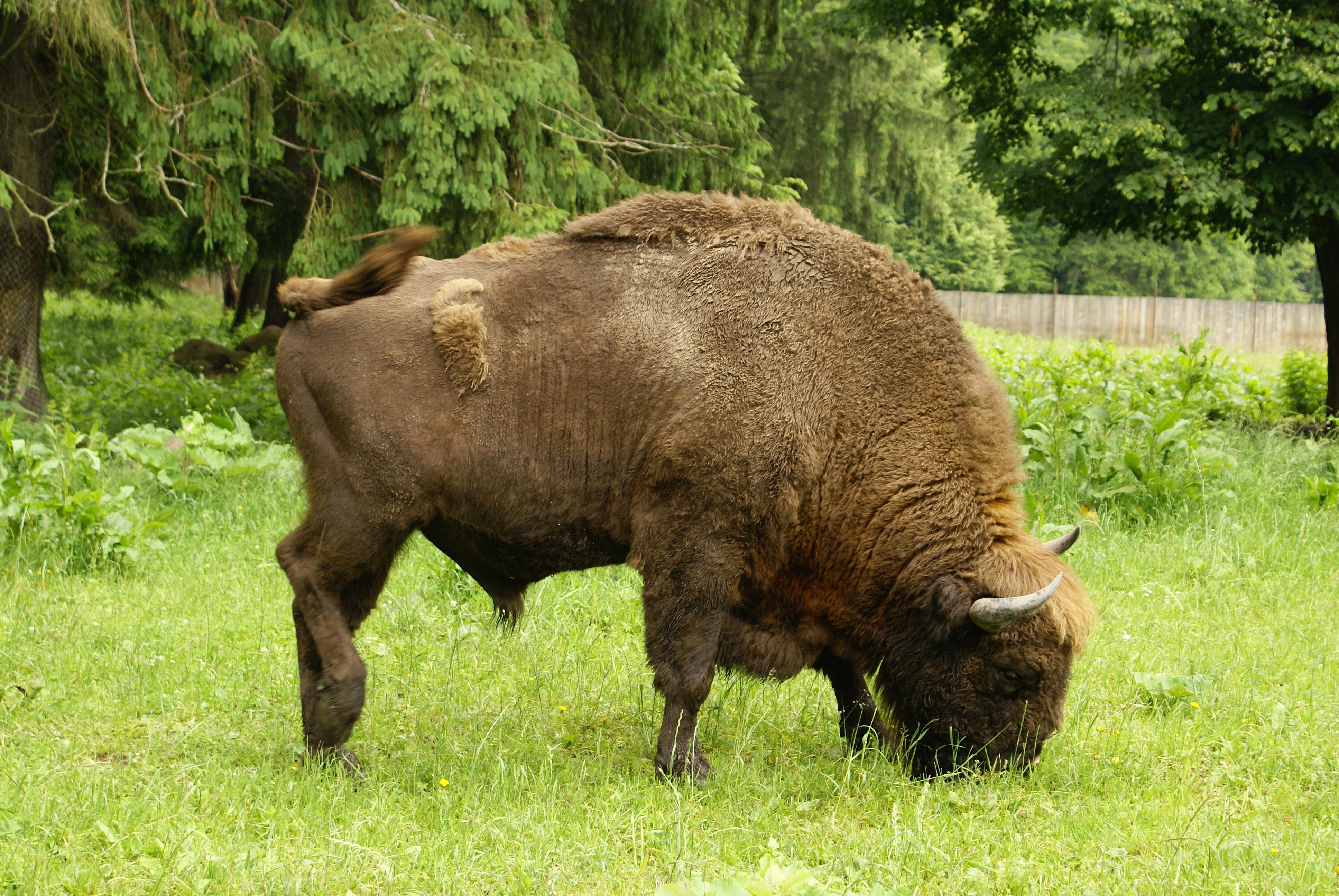 Pasoucí se zubr, Bělověžský prales, Polsko. Zubři jsou vzdálení příbuzní bizonů. (foto: Shutterstock)