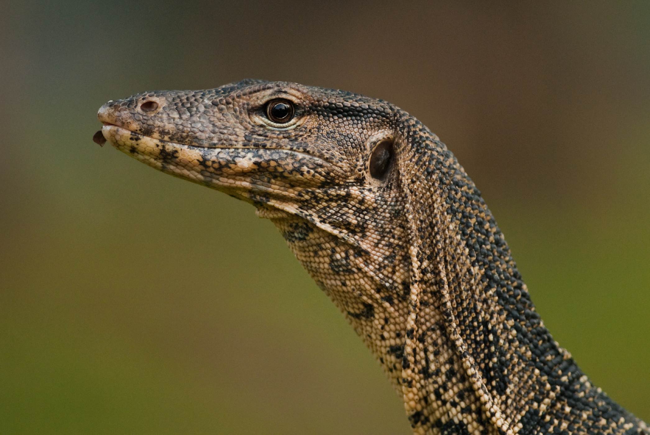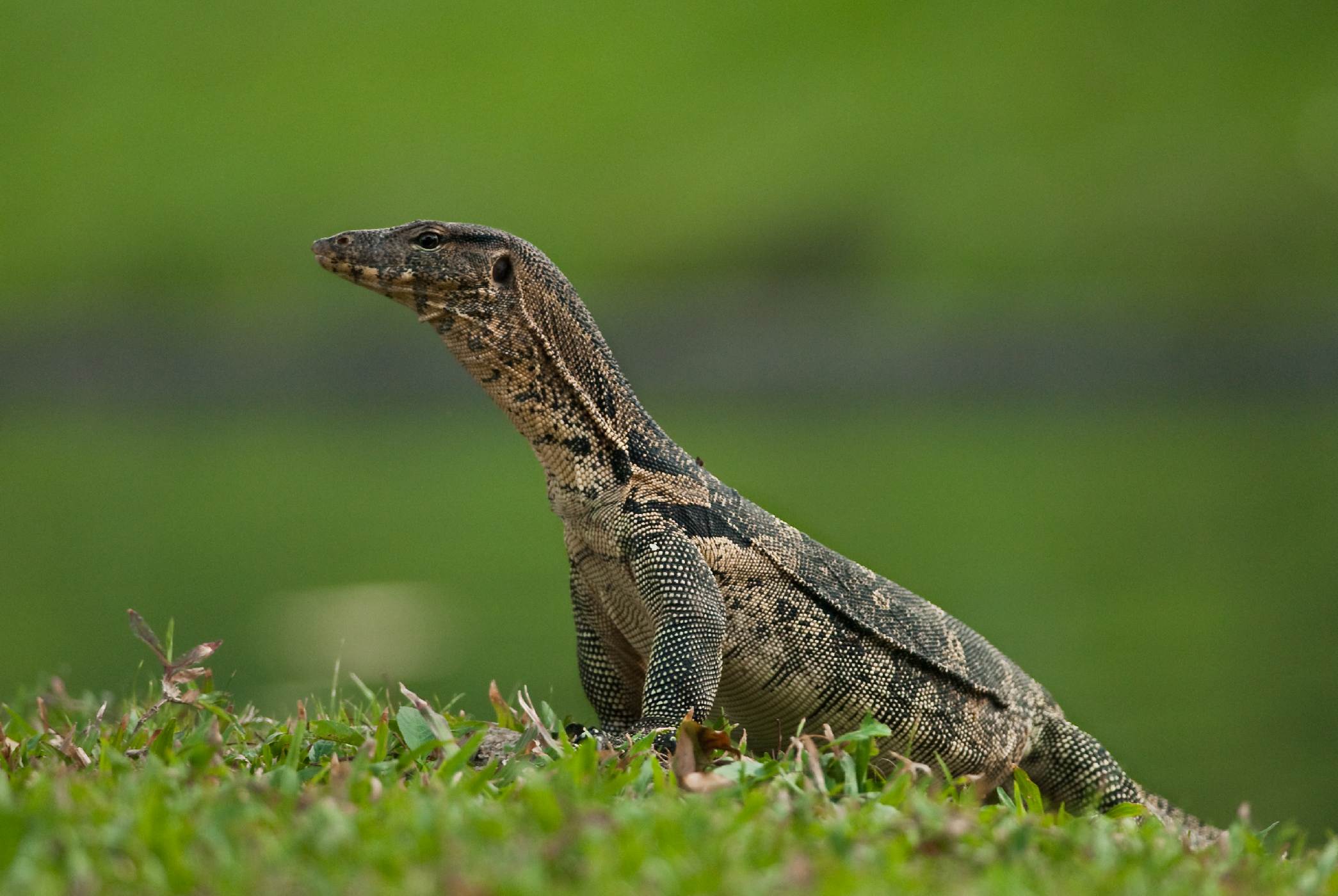 Dvoumetrový varan skvrnitý je opravdu majestátní zvíře, které si je vědomo své síly