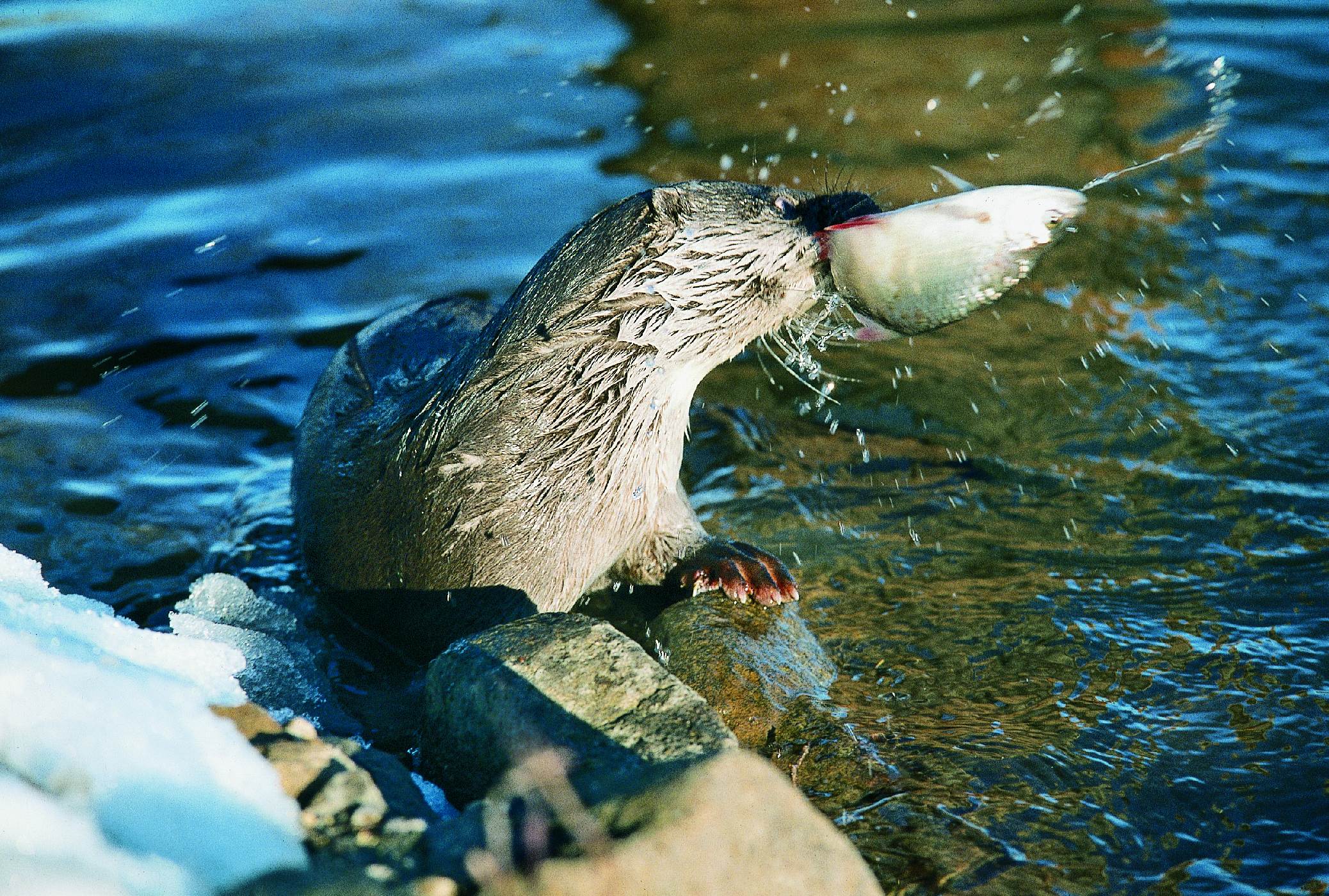 Vydry si často hrají s kořistí, kterou odhazují a zase ji chytají