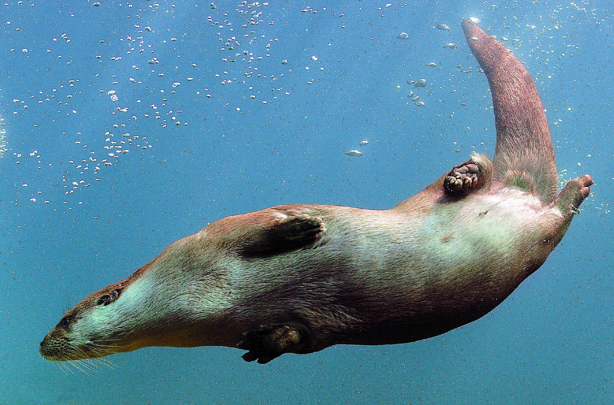 Pod vodou používá vydra střídavě všechny čtyři končetiny, které mají mezi prsty plovací blánu
