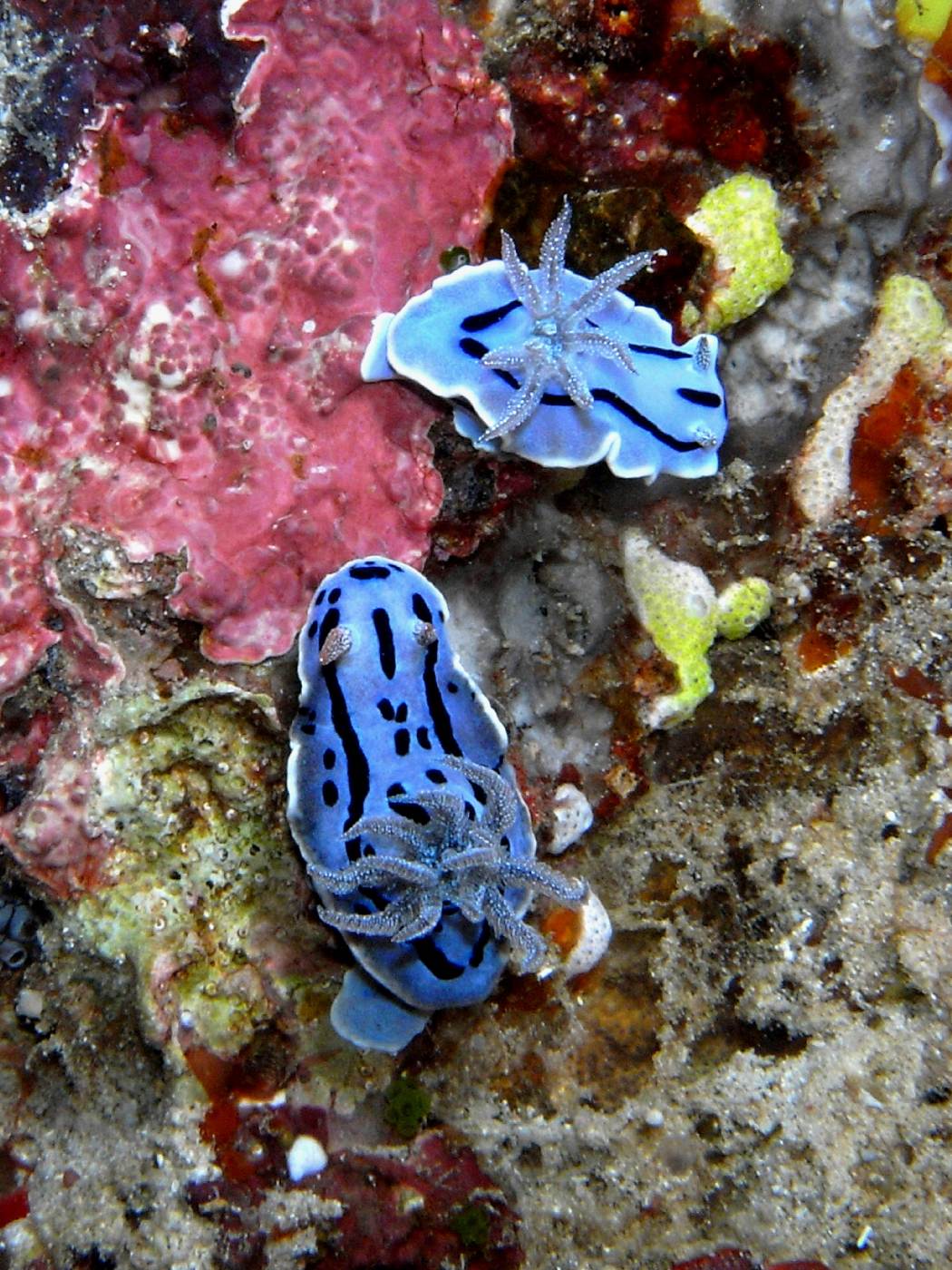 Nahožábří plži jsou zde ve všech barvách a velikostech téměř na každém rohu, na snímku hvězdnatky rodu Chromodoris