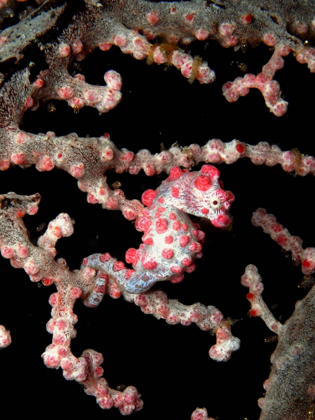 Mořští koníci Hippocampus bargibanti jsou na korálech rodu Muricella maskováni tak dokonale, že vzhledem ke zhruba dvoucentimetrové velikosti je téměř nemožné je objevit