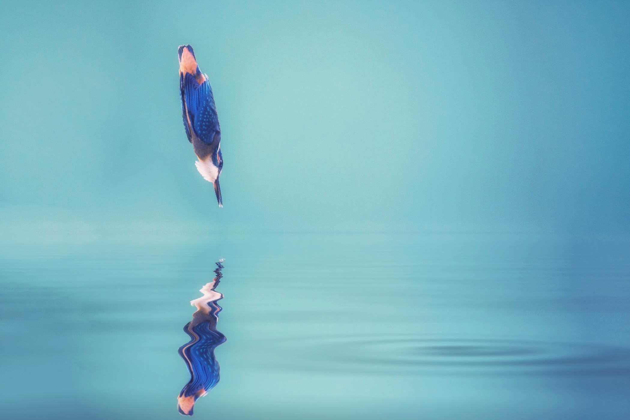 Fáze letu (nebo spíš volného pádu) těsně před proříznutím vodní hladiny. (foto: Shutterstock)