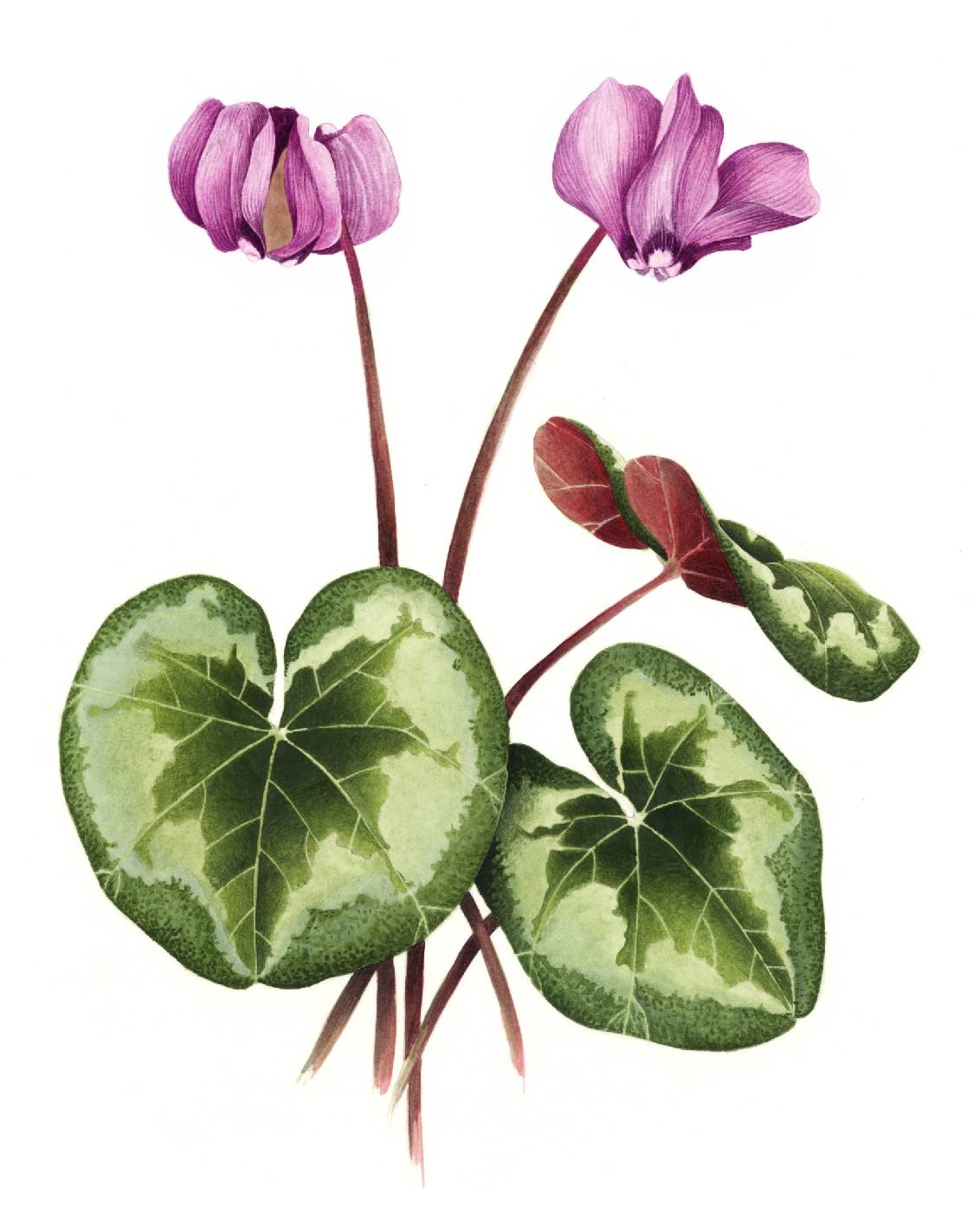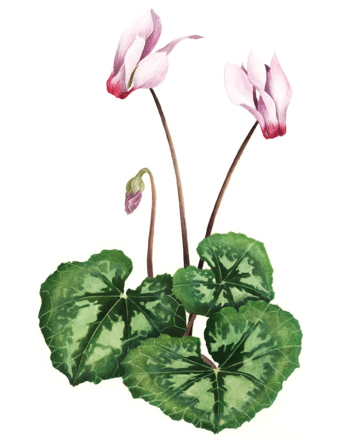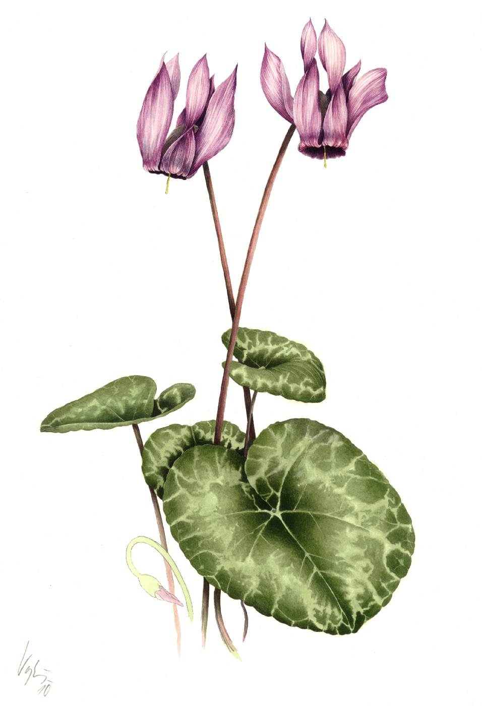Květy vykvétají brzy na jaře, v době kdy taje sníh. Jsou růžové, s tmavě purpurovou skvrnou naspod