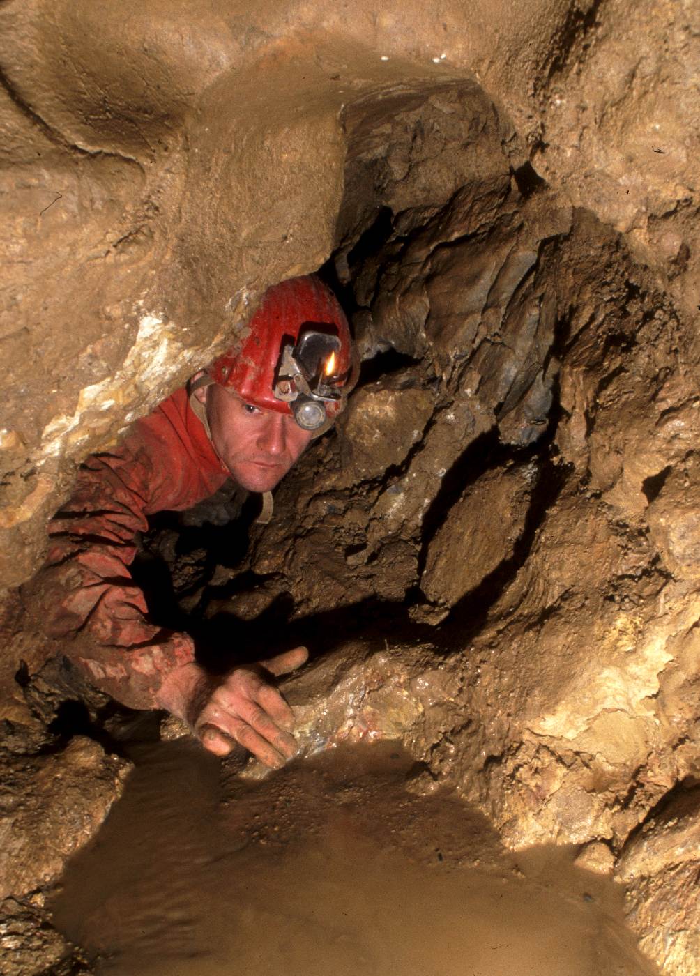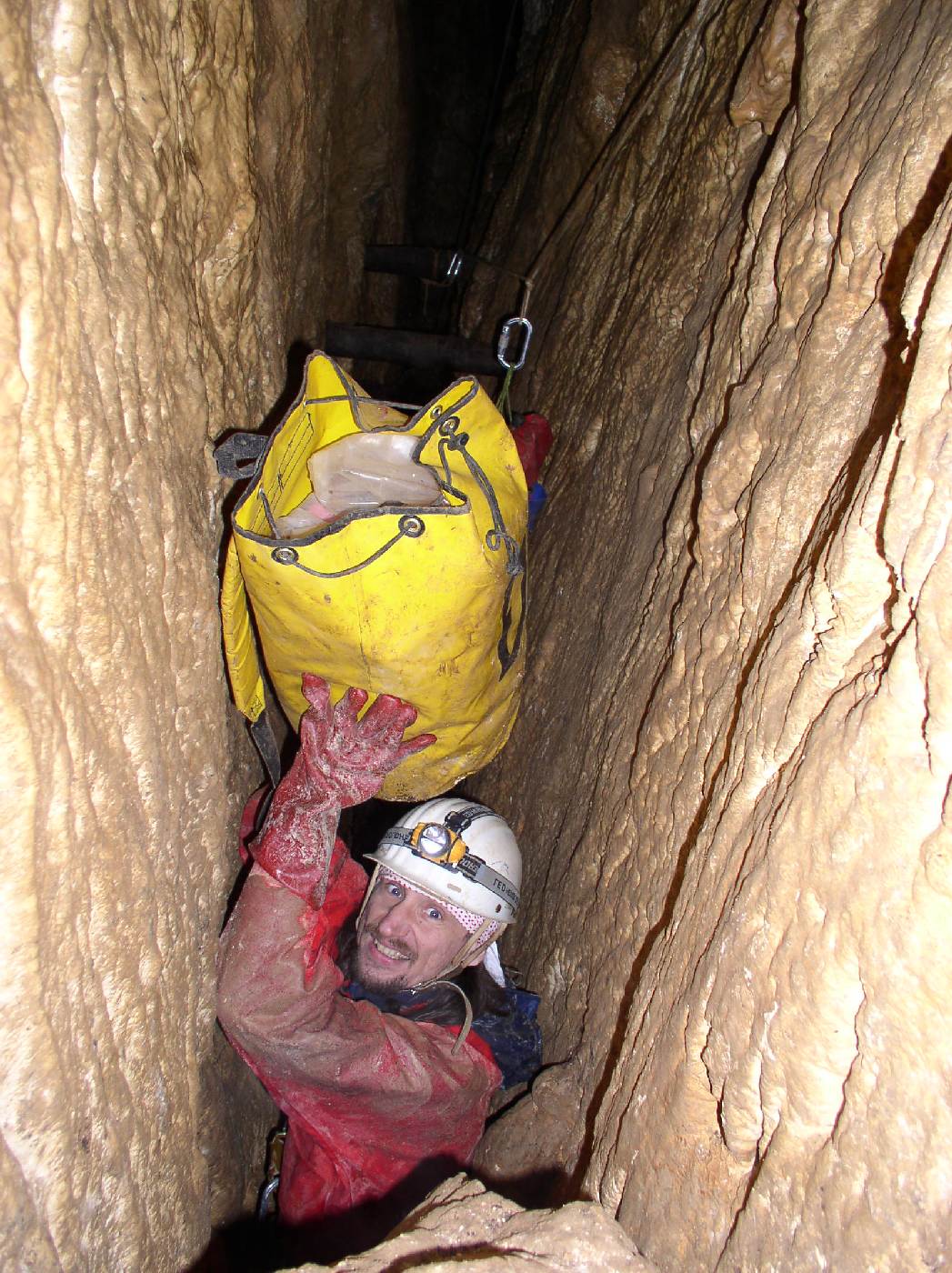 • Zpovídaný při jednom z prostupů užšími místy jeskyně