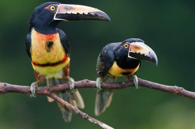 Arassari obojkový: Šplhavec ze Střední Ameriky a zodpovědný starší sourozenec