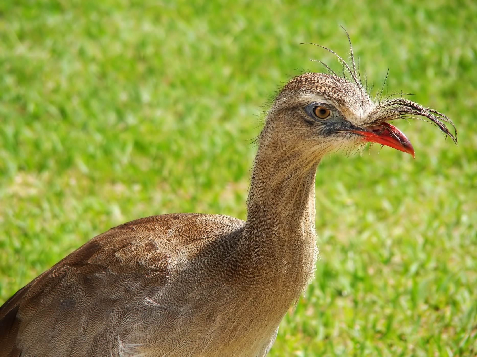 Portrétní snímek seriemy, na němž je dobře vidět korunka z peří, podle které dostal pták své pojmenování. (foto: Shutterstock)
