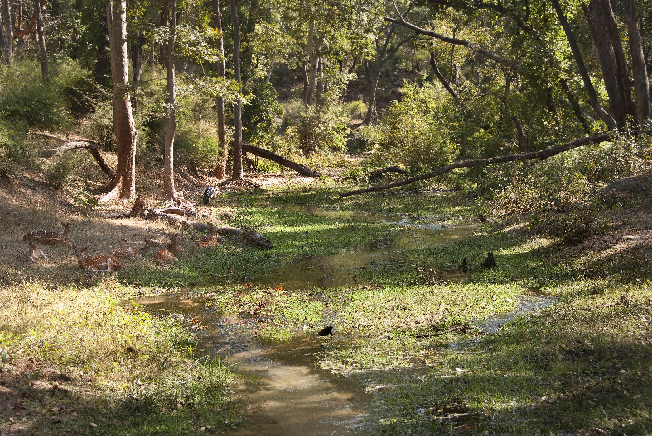 • Lesní krajina v národním parku Bandhavghar – přirozené prostředí tygra bengálského