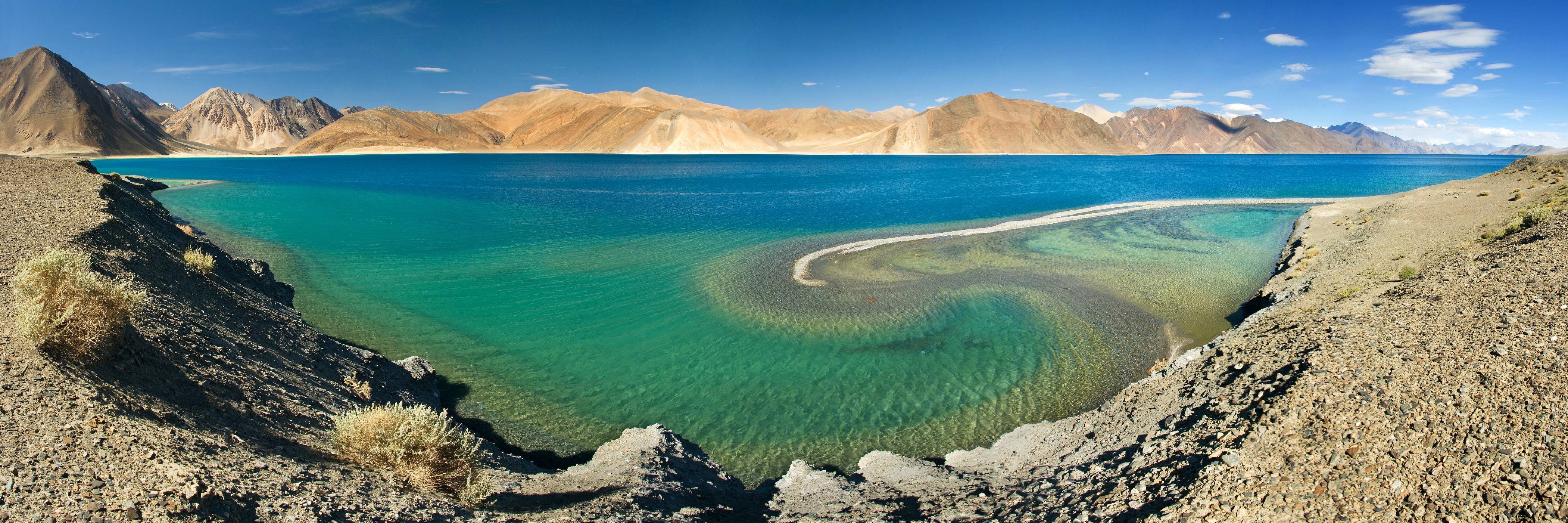 Jeden z mnoha překrásných pohledů na jezero Pangong Tso a všechny jeho barvy