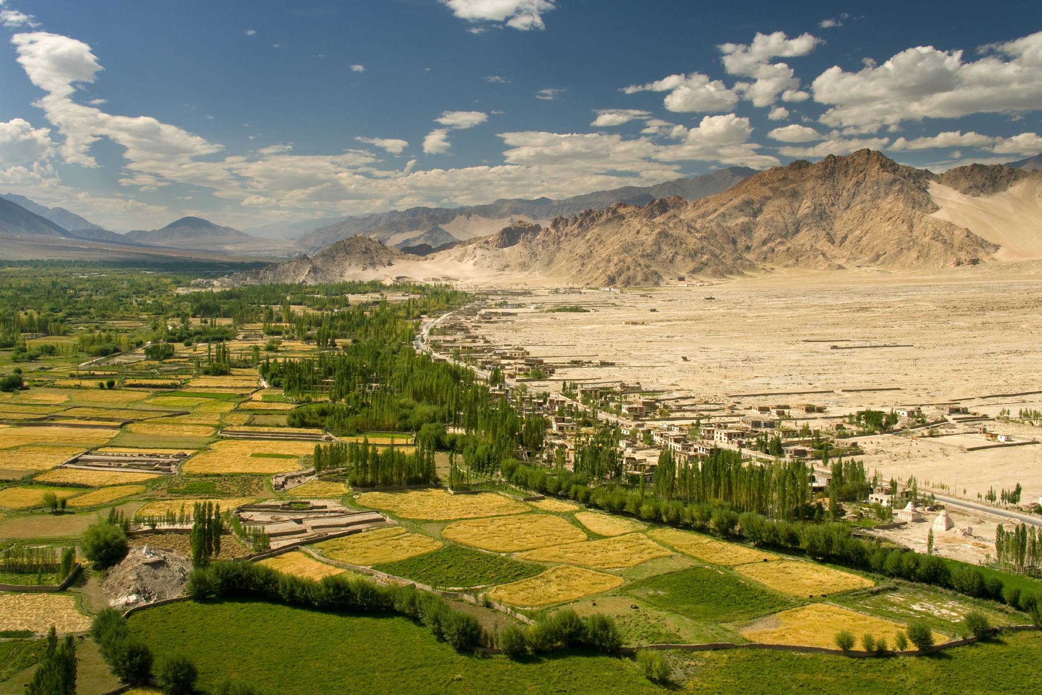 Hranice oázy a pouště, života a pustiny je na mnohých místech ostrá (údolí Indu)