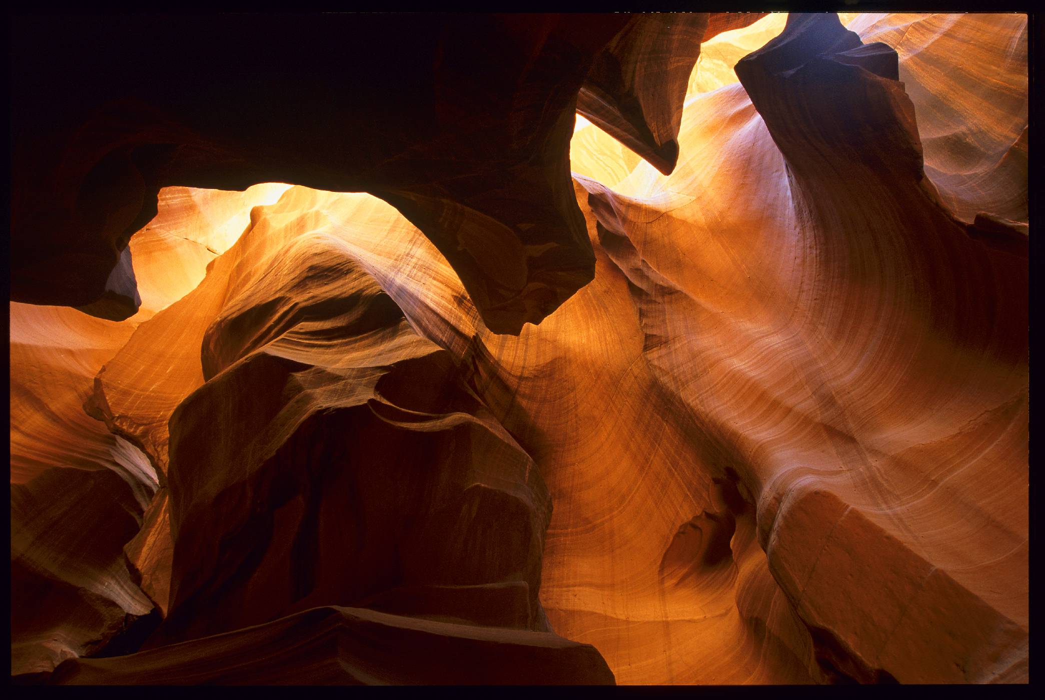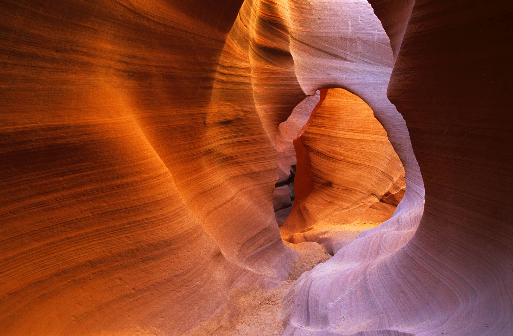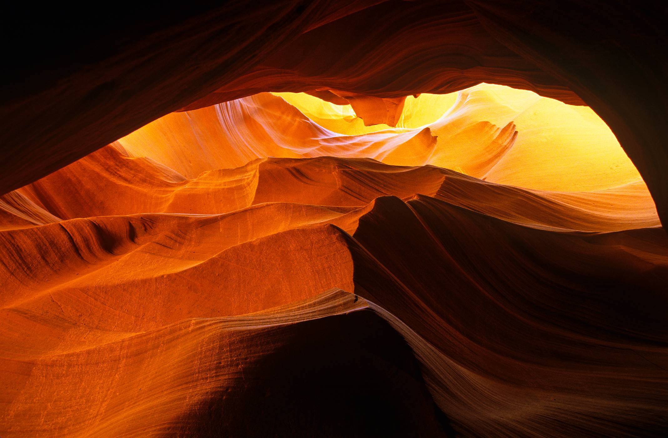 • V Dolním antilopím kaňonu, naší první soutěsce, vydržíme hodiny. Už jsme skoro na odchodu, když se ještě jednou naposled otáčíme a kamenný most se na pár minut rozzáří do ohnivé červeně