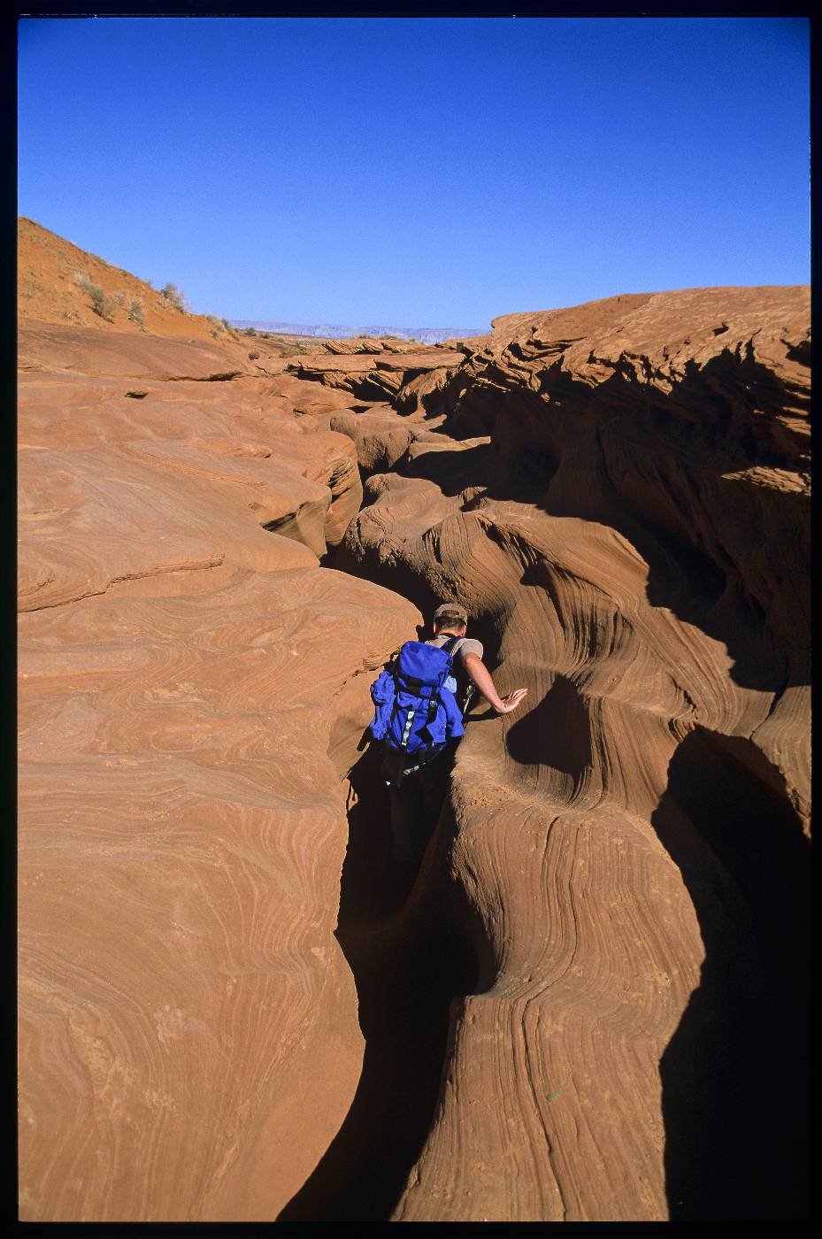 • Do Lower Antelope Canyonu se vchází úzkou štěrbinou. Člověk vůbec netuší, kolik „nadpozemské“ krásy na něj v podzemí čeká