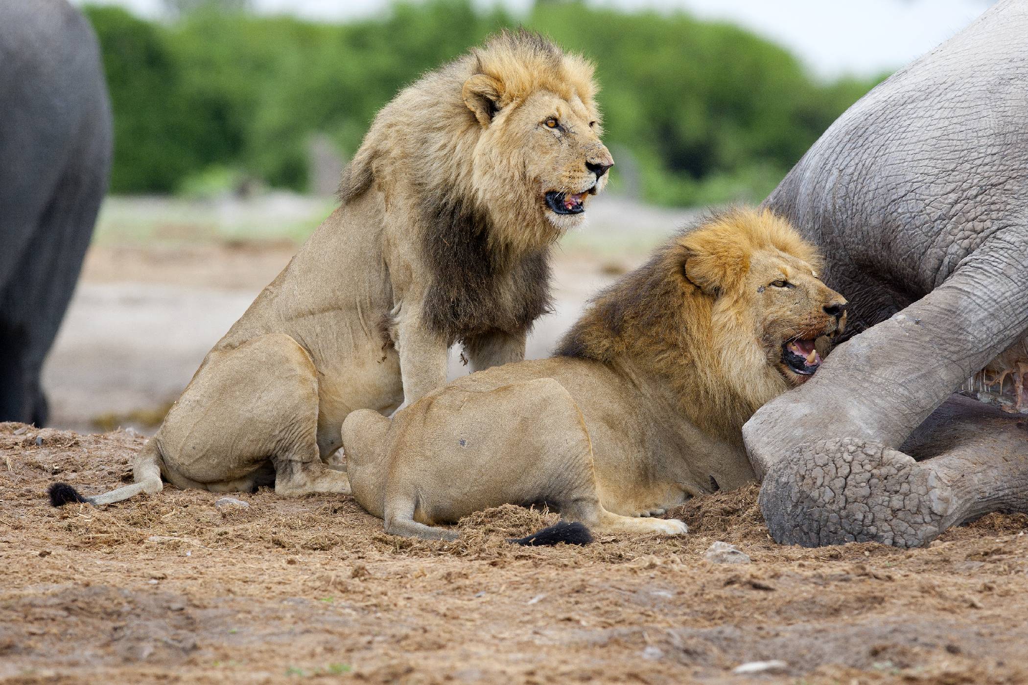 Při „porcování“ sloního obra lvi velmi často sledovali okolí