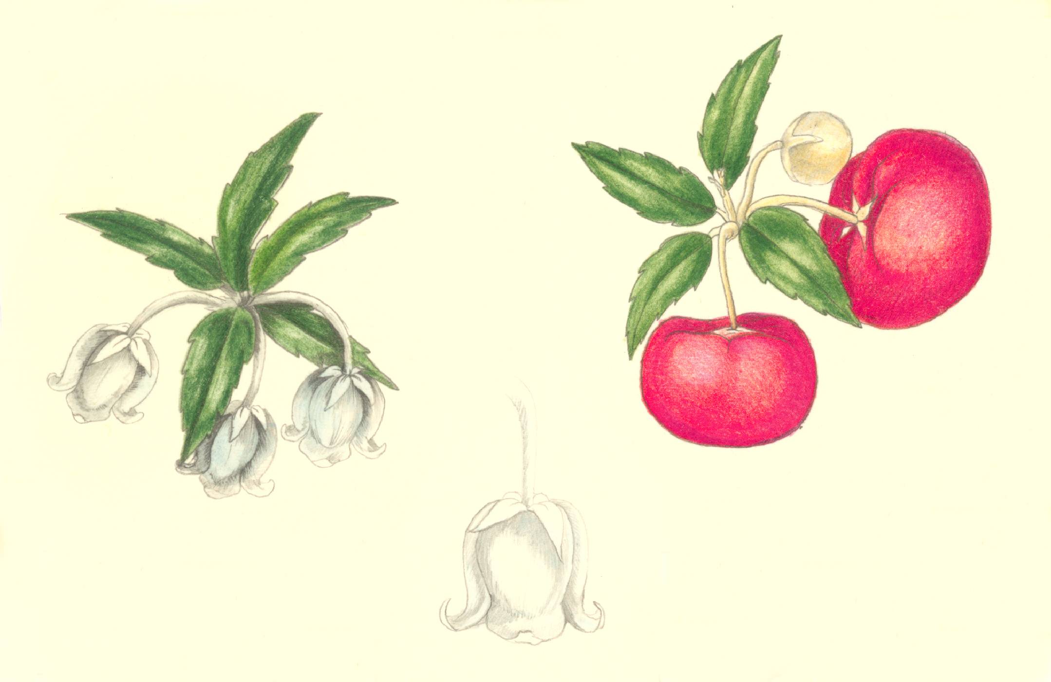 Květy vykvétají z paždí listů. Pernetye jsou dvoudomé – některé květy jsou samčí a jiné samičí, na jedné rostlině jsou však obě pohlaví