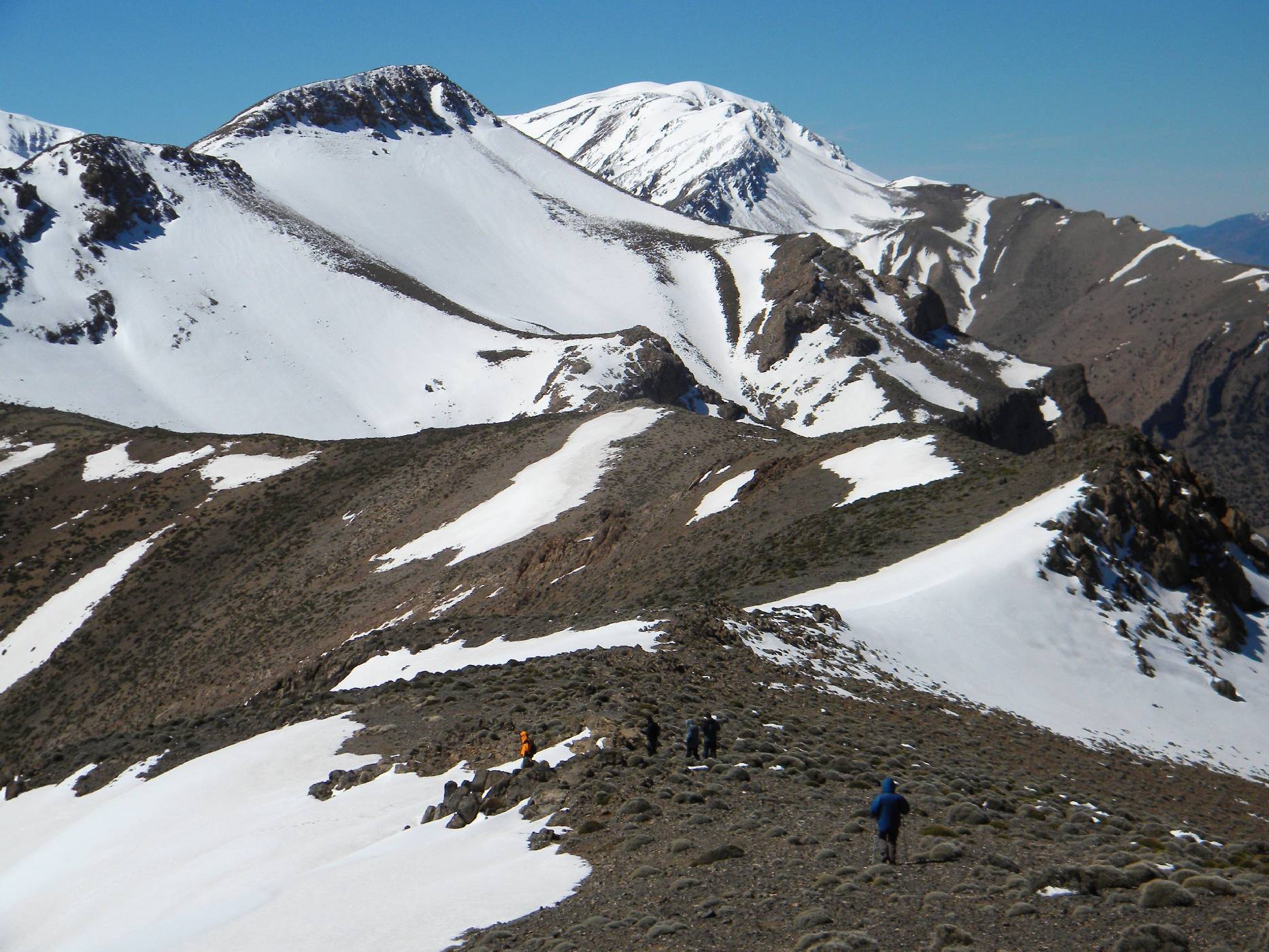 Djebel Ayachi a labyrint hřebenů severního předhůří (ostrý hřeben v popředí byl našim cílem)