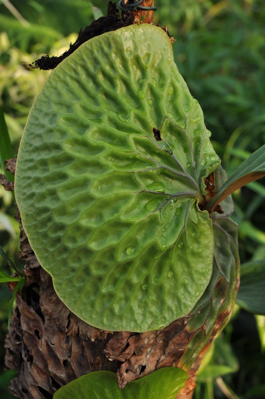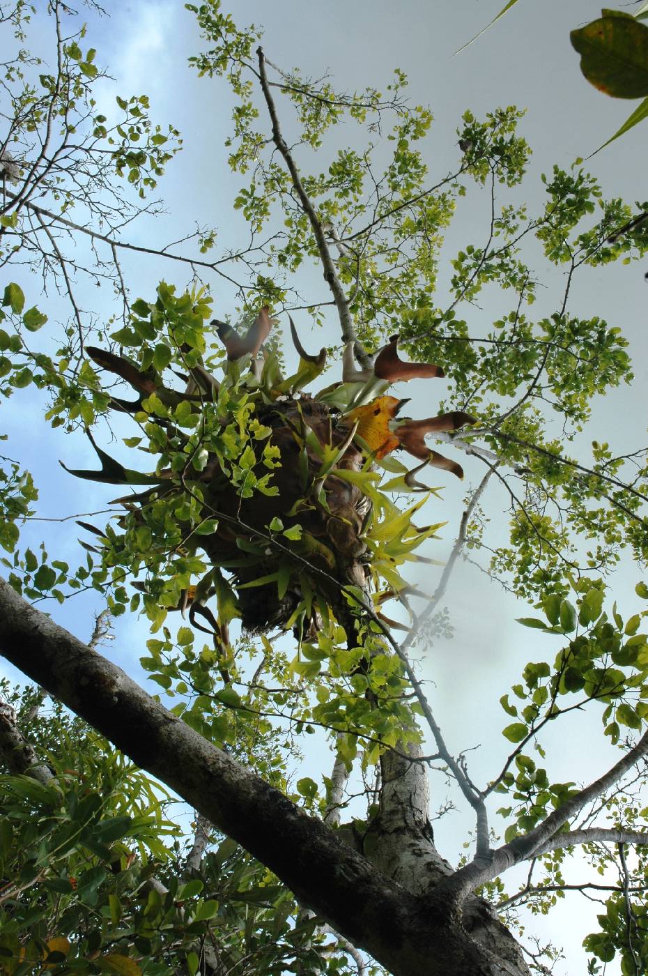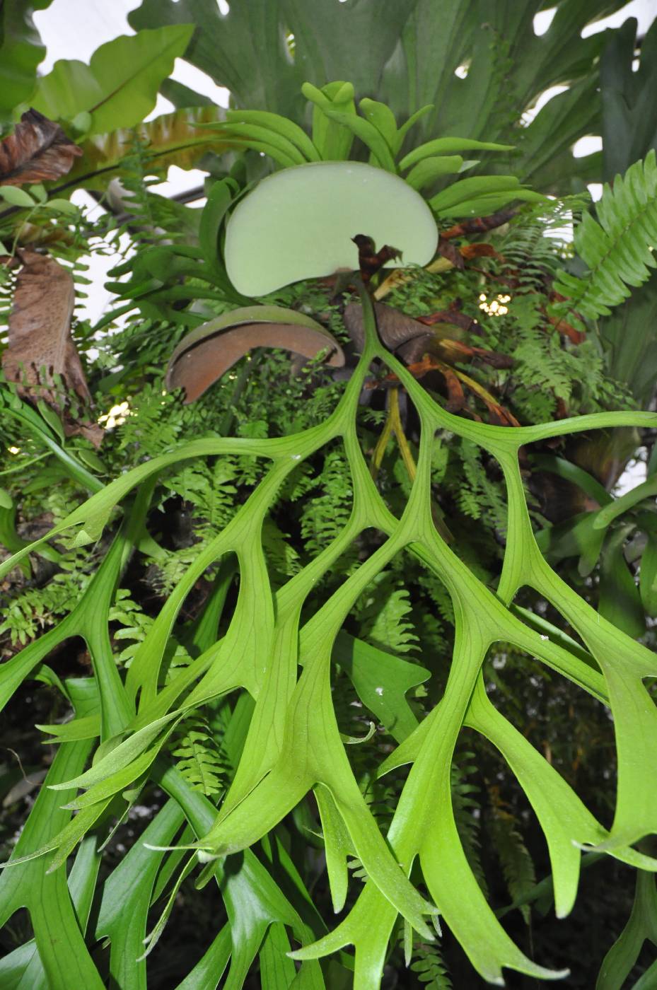 Dospělou rostlinu Platycerium coronarium lze již zdálky dobře poznat podle ledvinité mističky vyrůstající z okraje listu. Pokud má světlou barvu, výtrusy na ní jsou ještě nezralé, má-li barvu tmavě hnědou, výtrusy se již uvolňují a vítr je roznáší po okolí