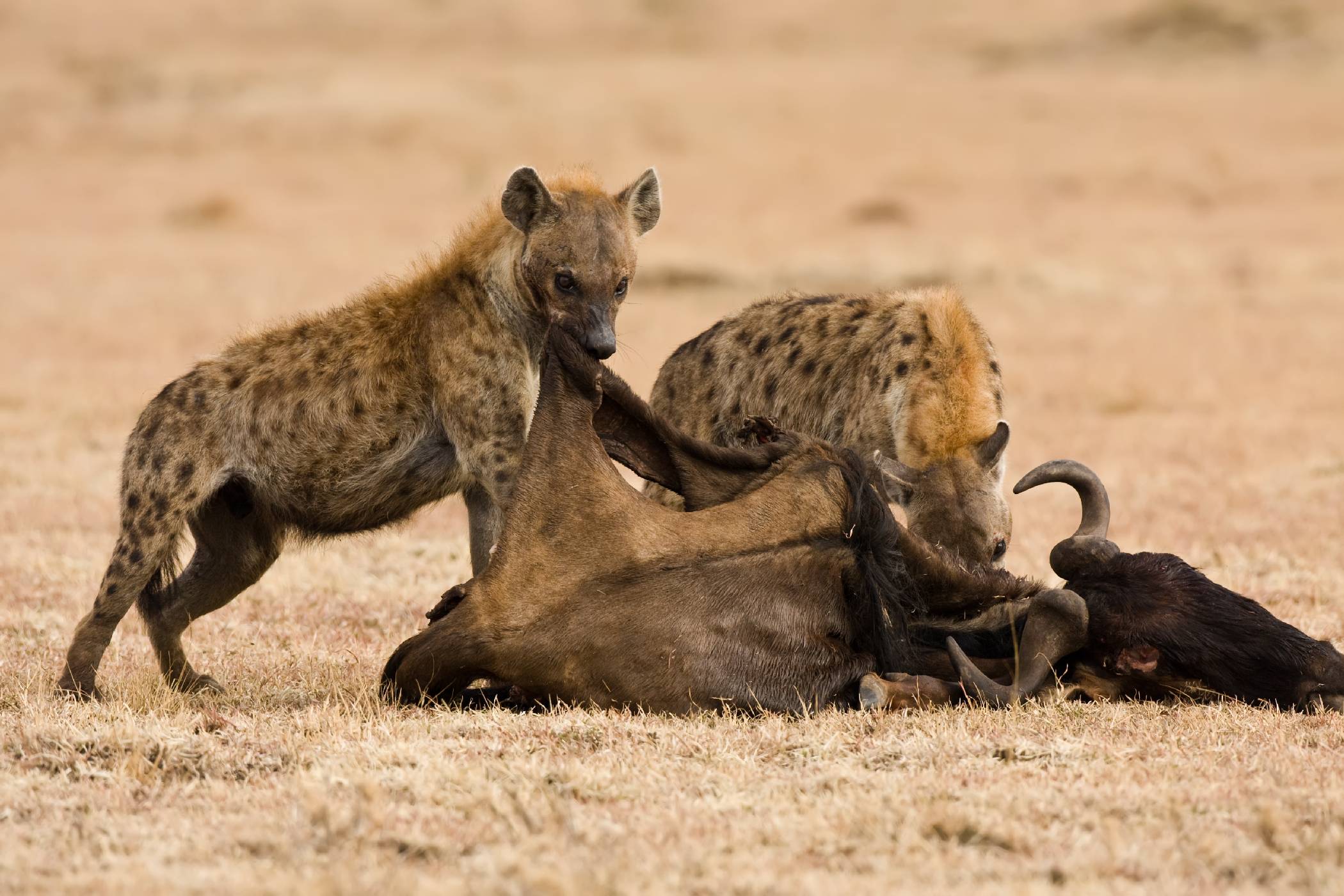 Navzdory stále rozšířené představě si hyeny až 80 % potravy uloví. Naproti tomu potrava lva je z 50 % tvořena právě mršinami. (foto: Shutterstock)
