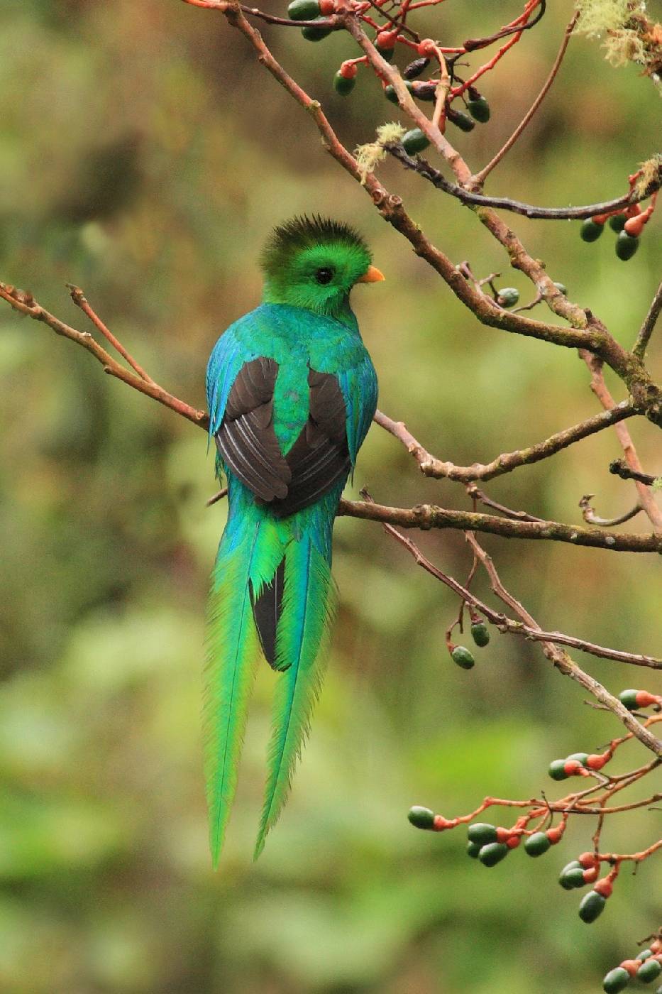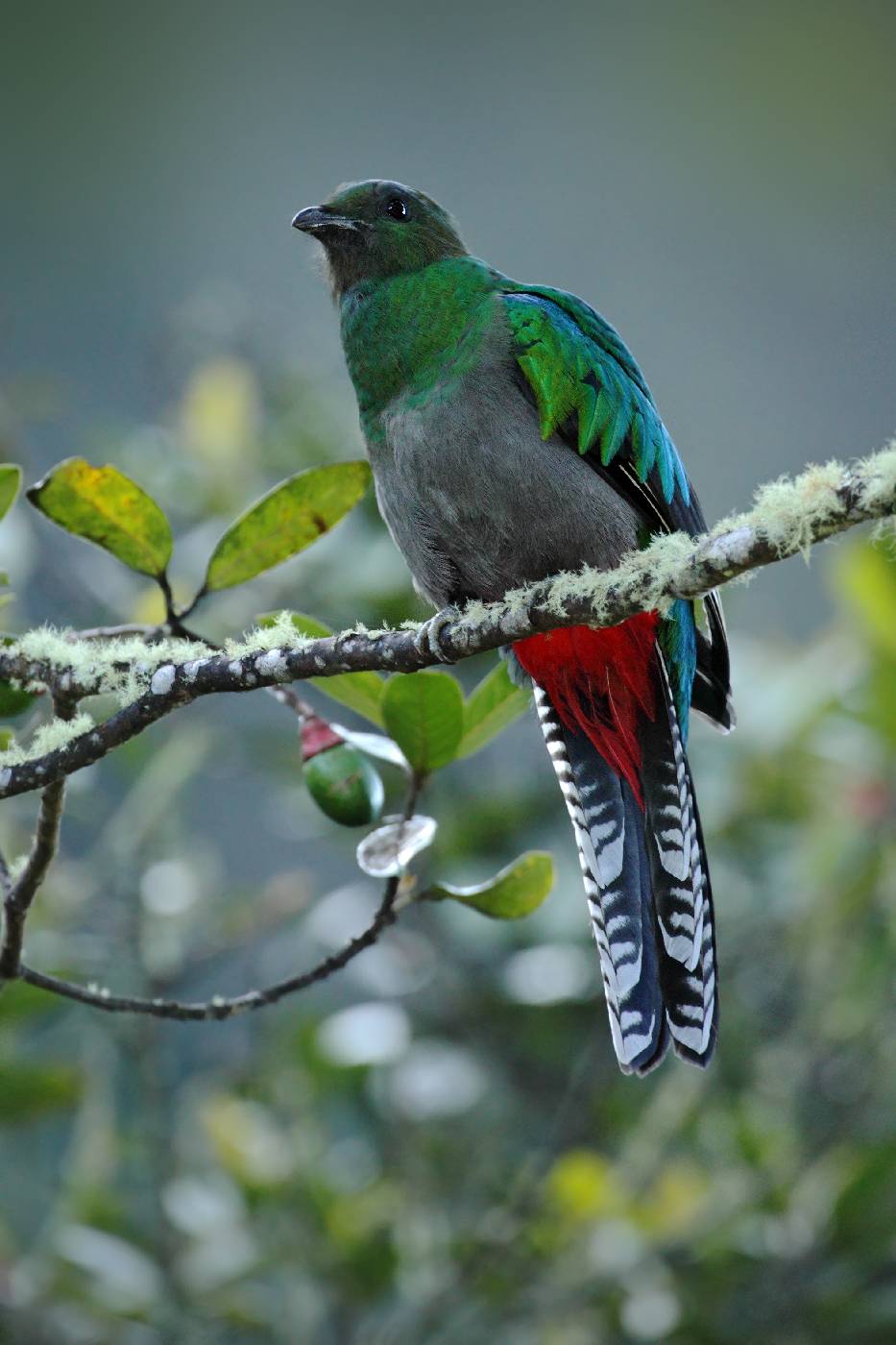 Kvesal chocholatý s plody planého avokáda, které je jeho oblíbenou potravou