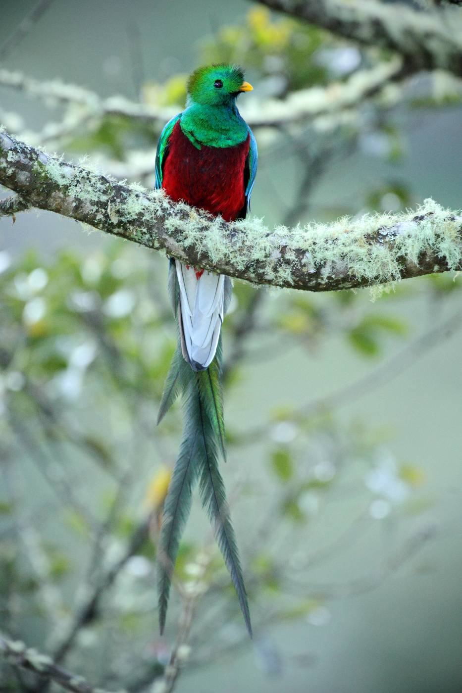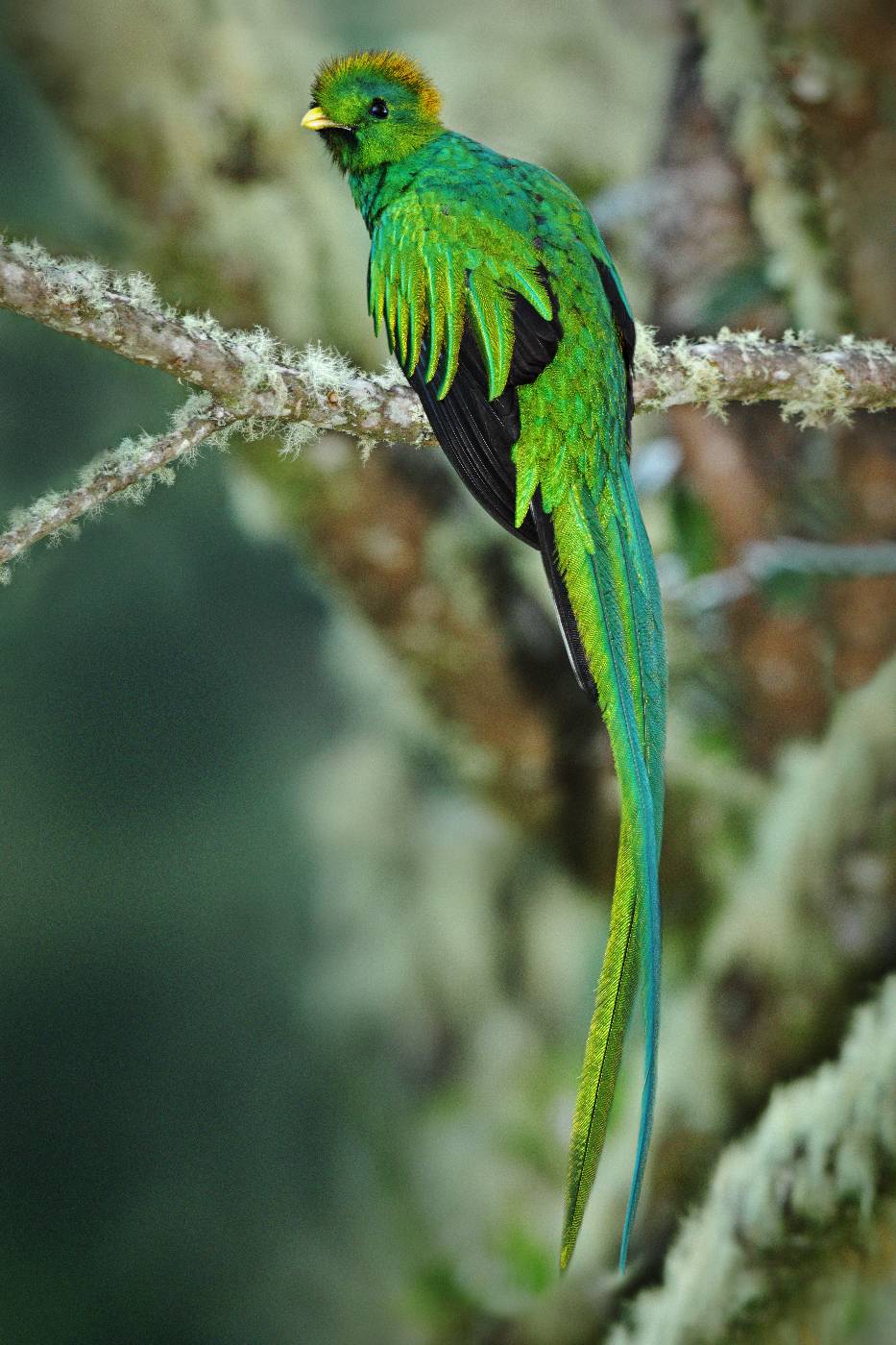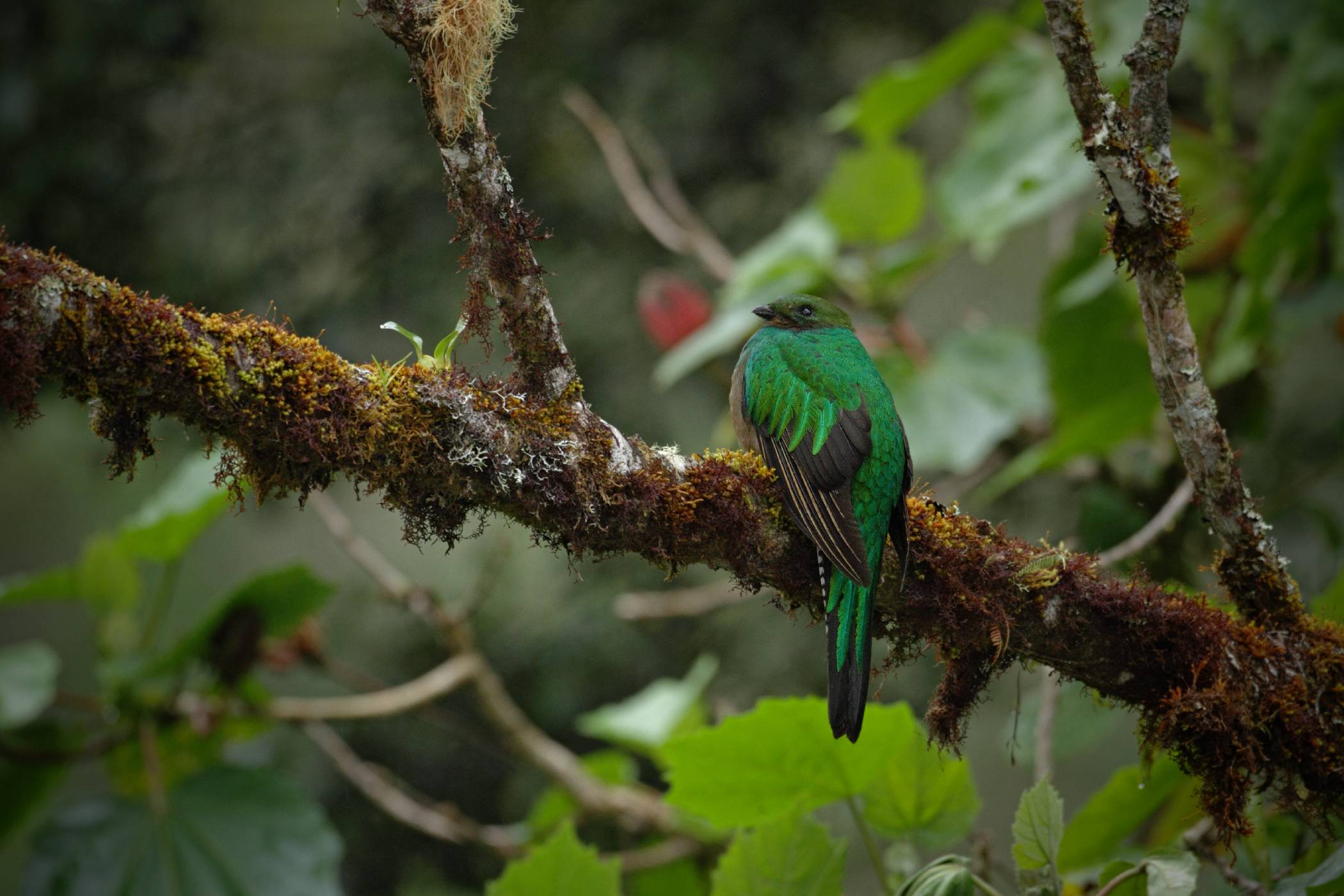 Samička kvesala v přirozeném prostředí horského mlžného lesa