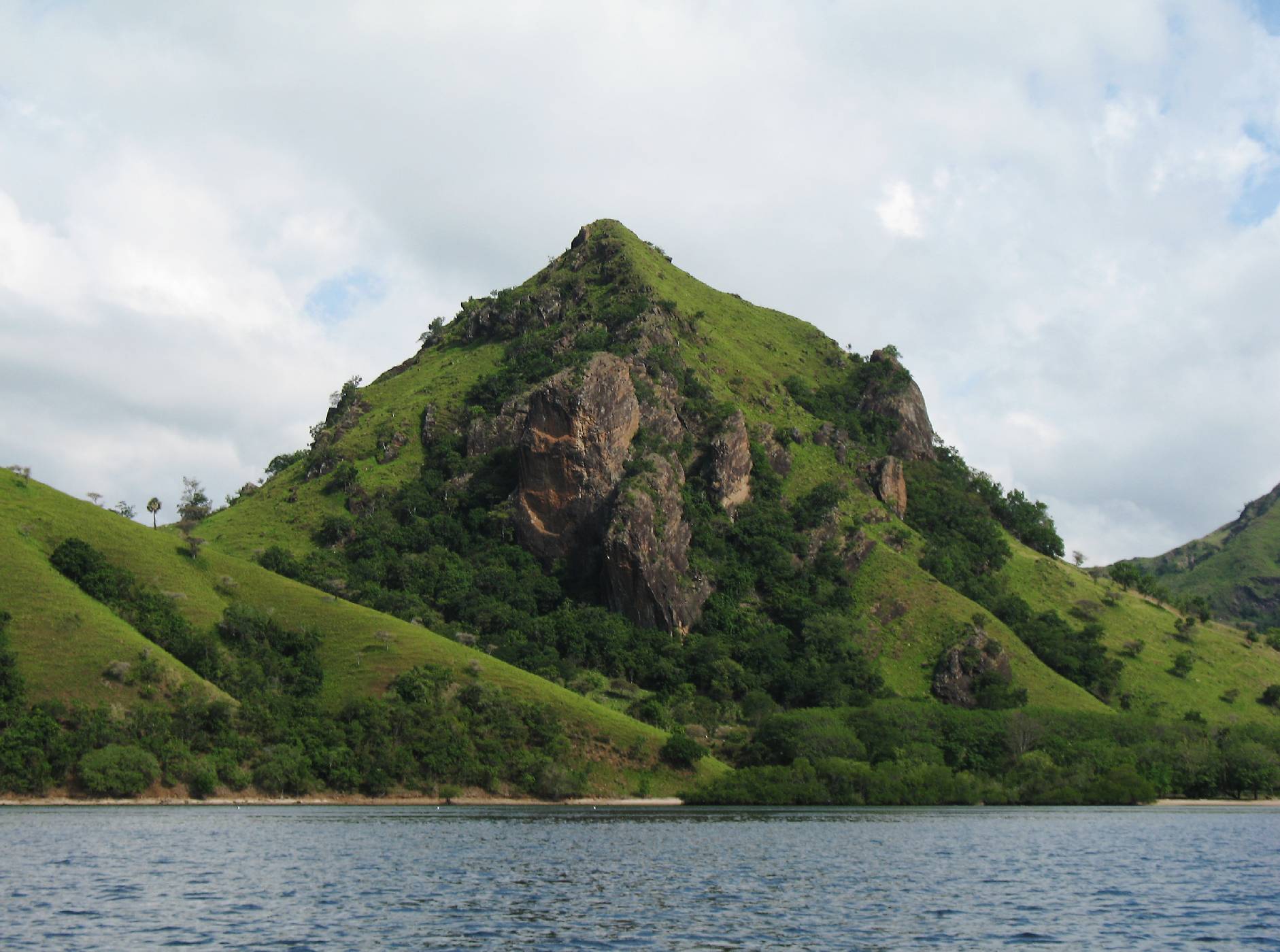 I z paluby lodě se Rinca jeví jako rozmanitý a členitý ostrov. (foto: Peter Hupka - se souhlasem k publikování)