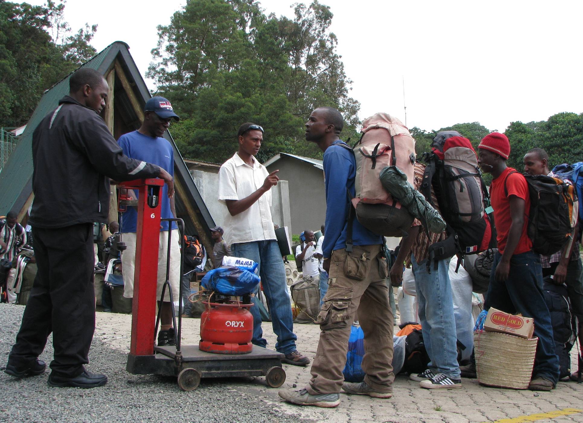 Hned za bránou probíhá oficiální vážení zavazadel. Žádný z nosičů by na zádech neměl nést víc než 20 kilogramů