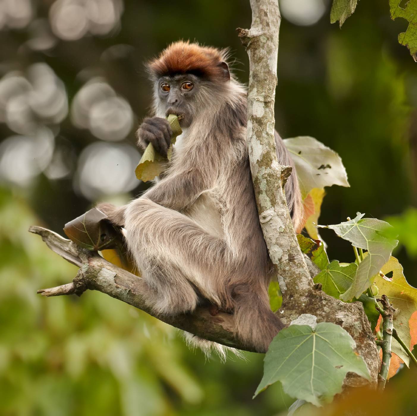 Červené guerézy, mezi něž gueréza šedonohá patří, jsou úzce specializované na listy stromů