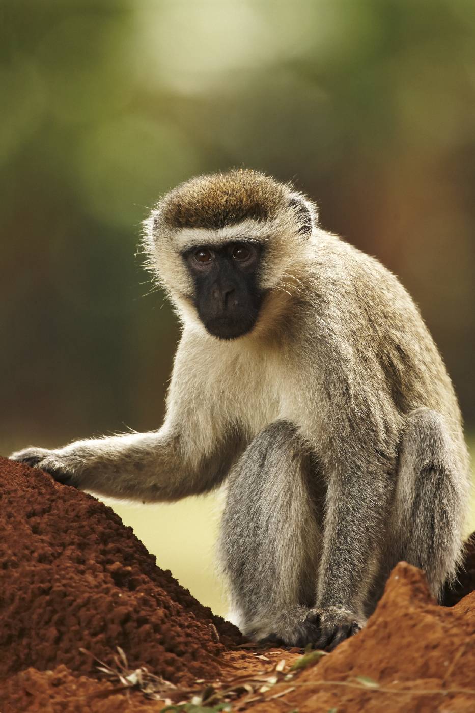 Tento kočkodan zelený zkoušel najít potravu i v termitišti