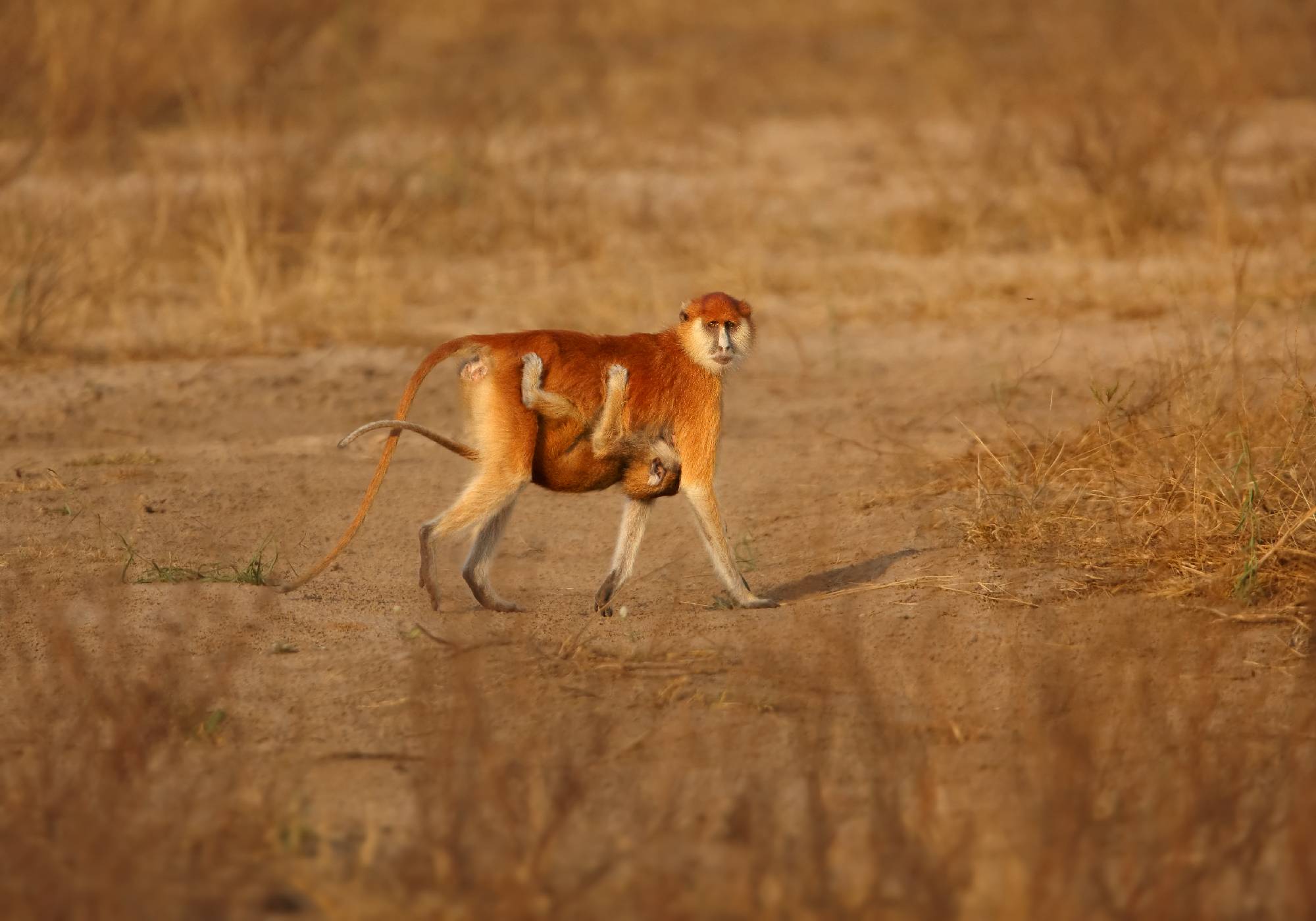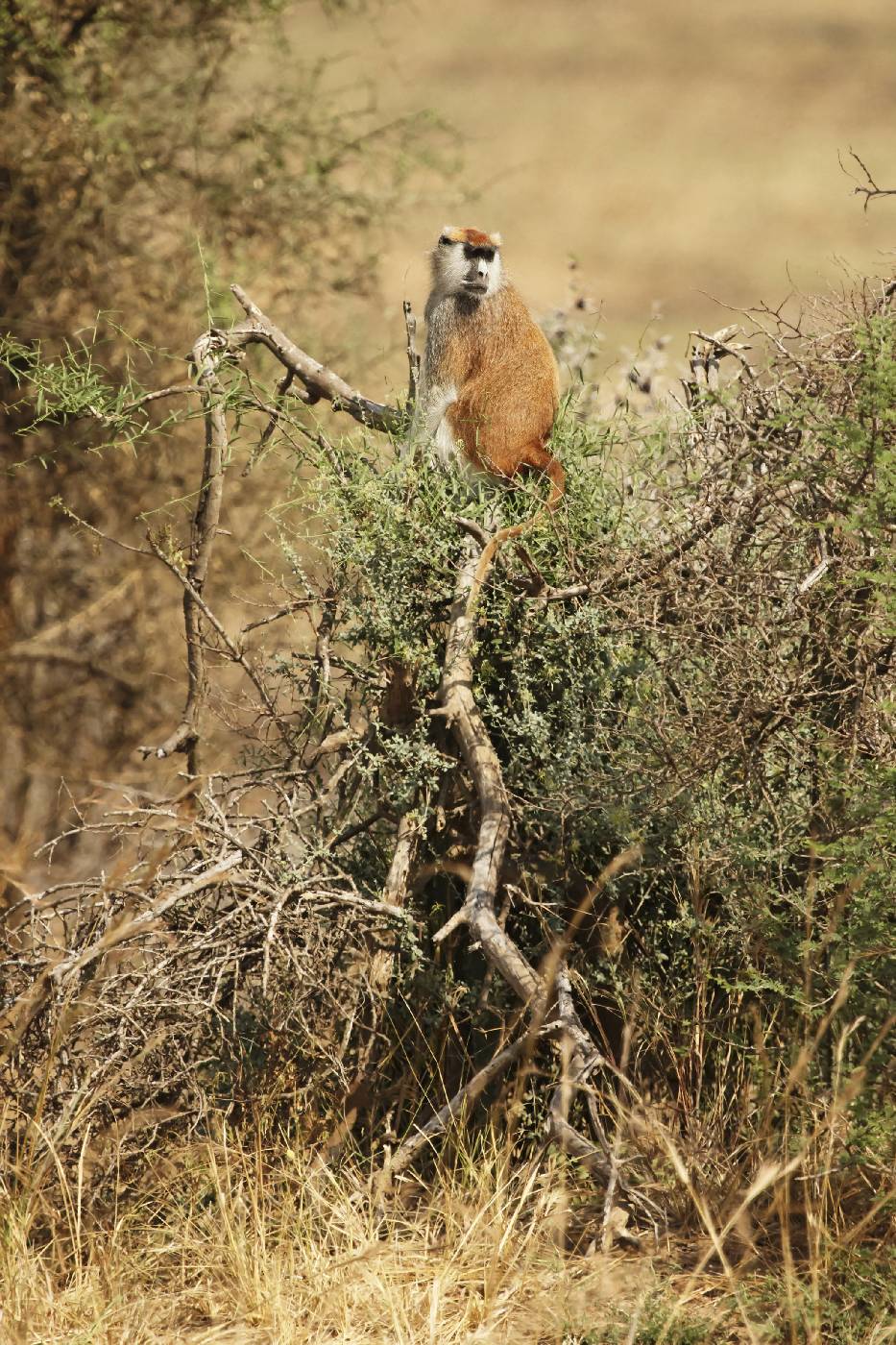 Kočkodan husarský je dobře přizpůsoben pohybu v otevřené savaně