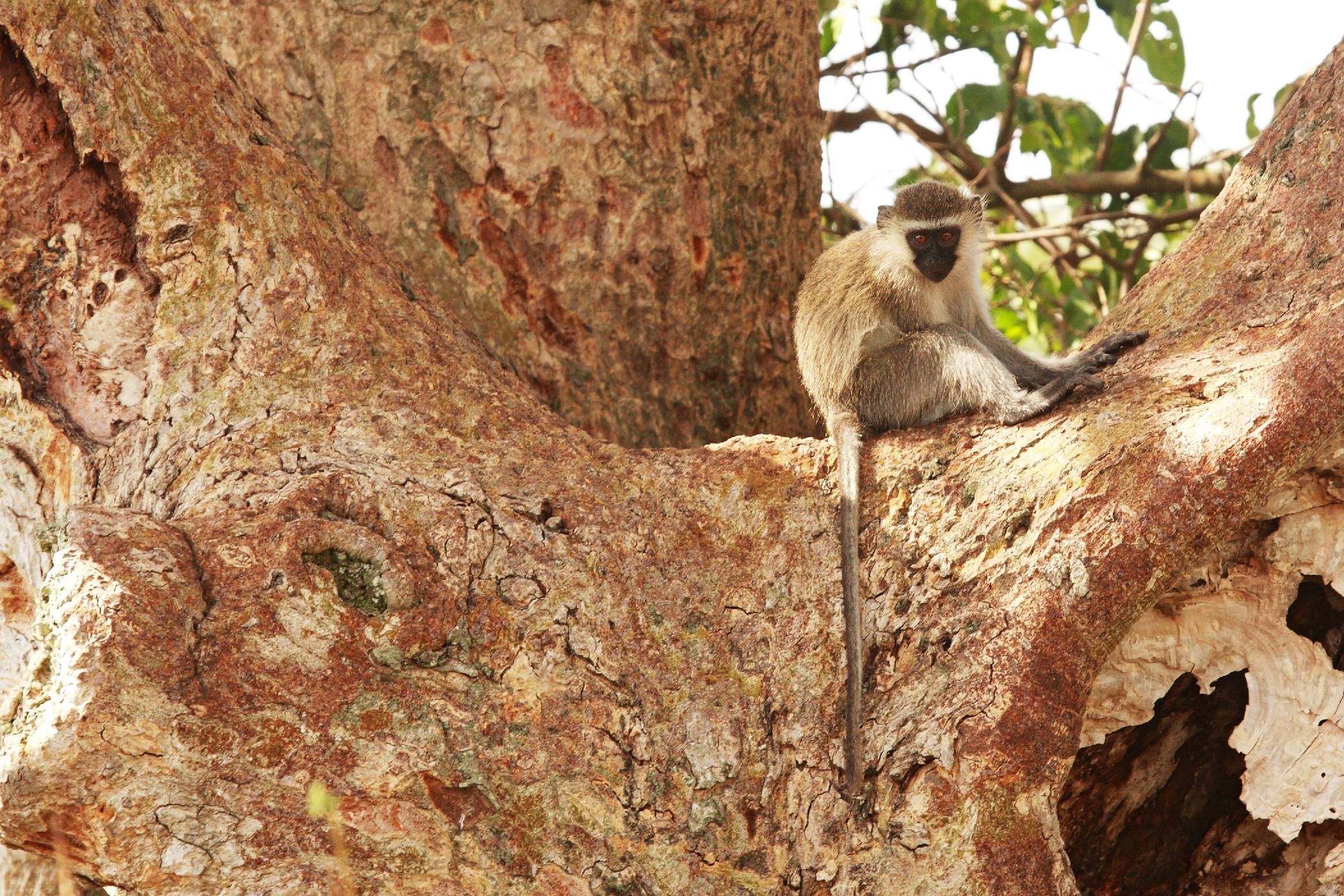 Přestože se kočkodan husarský v savaně dobře orientuje, neváhá využít nízké stromy a keře jako pozorovatelny