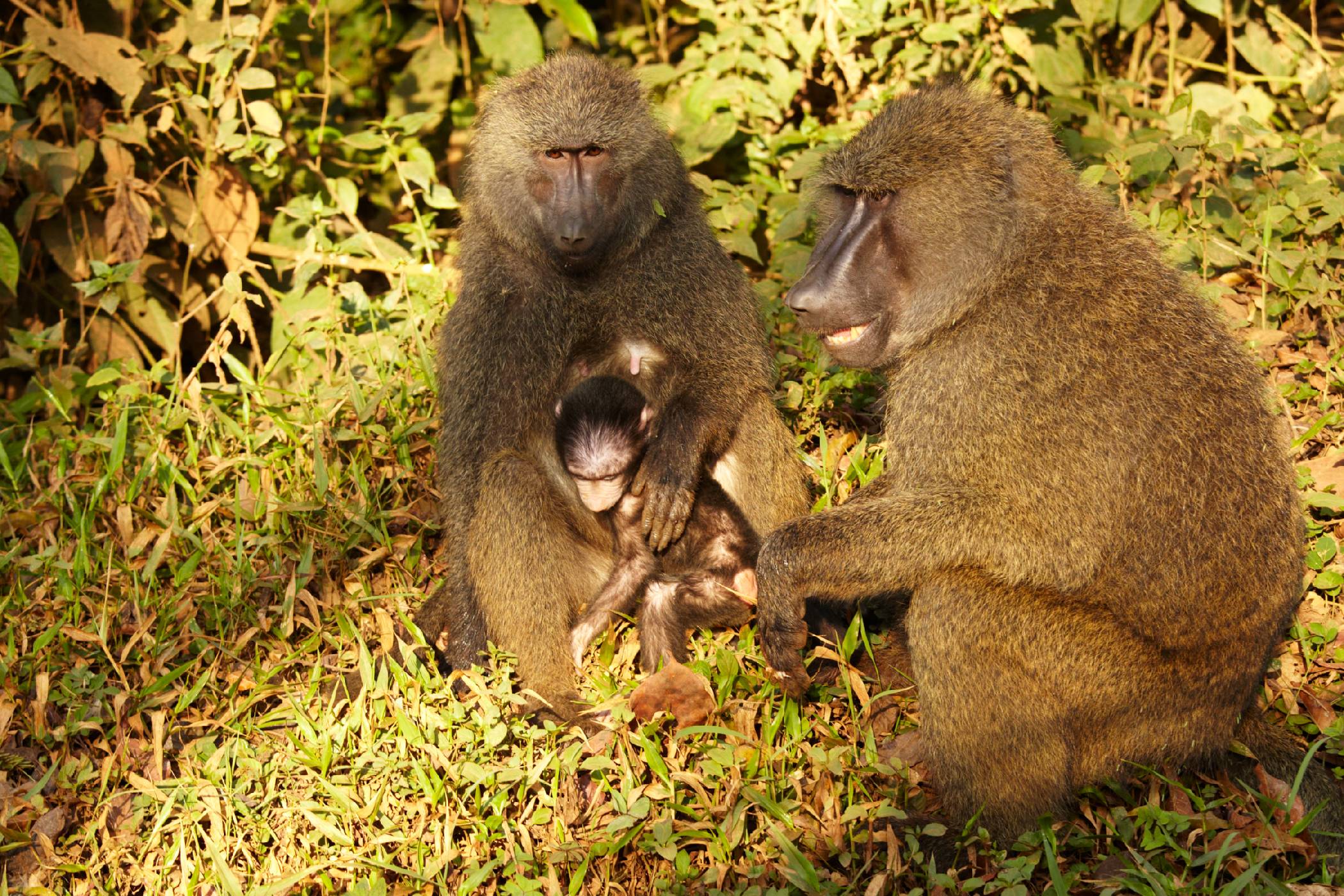 Samec paviána anubi umí svou rodinku odhodlaně bránit