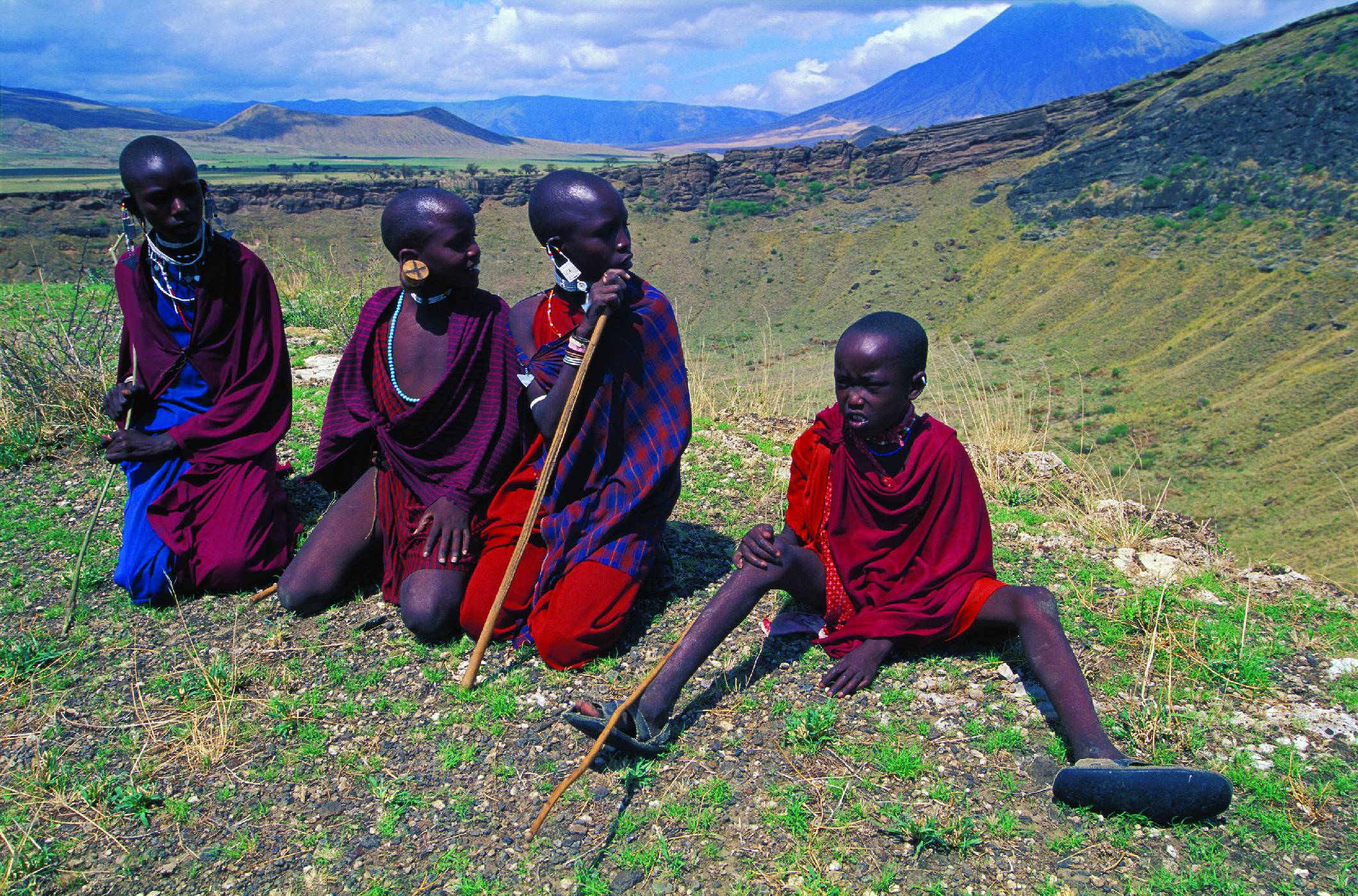 Masajské děti a v pozadí „boží hora“ – sopka Oldoinyo Lengai