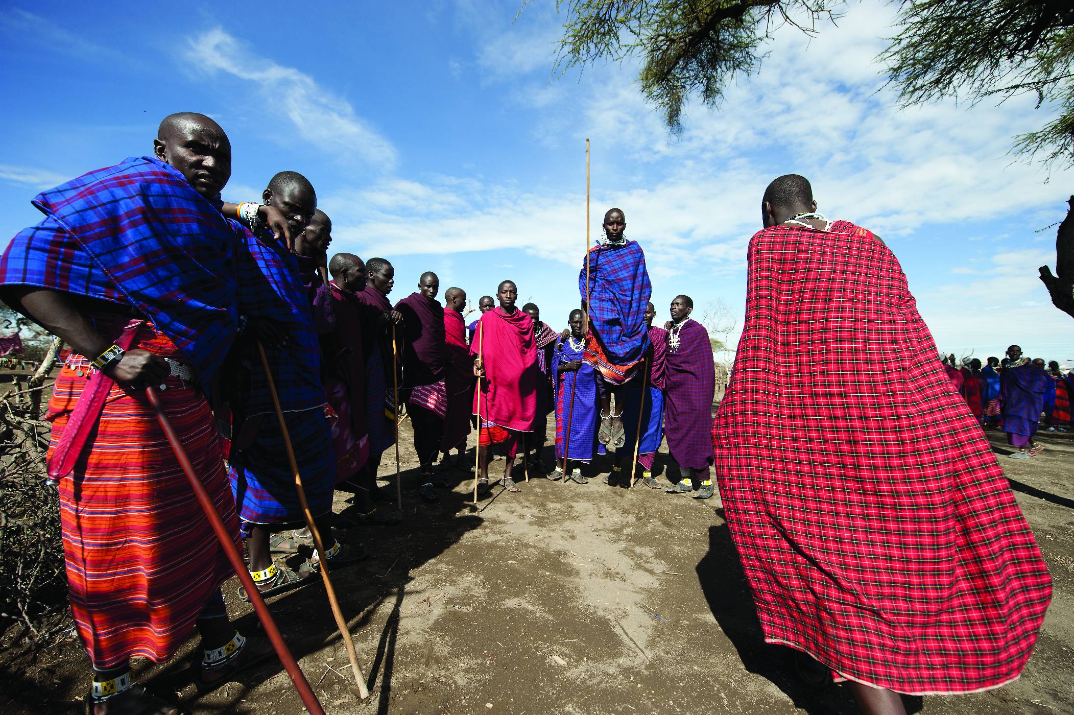 Rituální masajský tanec, při němž muži vyskakují do výšky, aby předvedli svoji fyzickou zdatnost