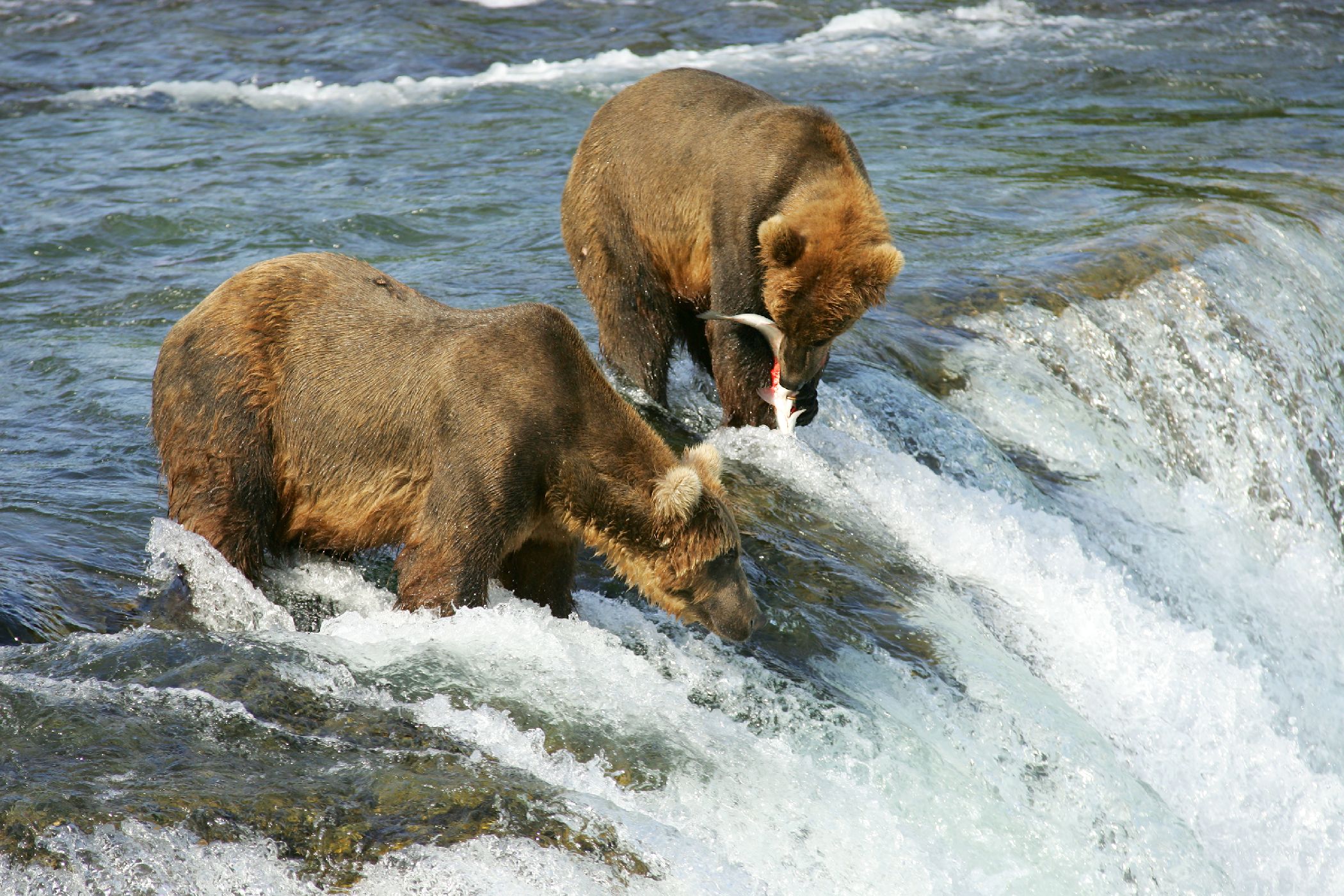 Lososi a medvědi grizzly tvoří klíčové druhy krajiny u říčních koryt. První představují obrovskou zásobárnu živin, druzí nepostradatelné distributory. (foto: Shutterstock)