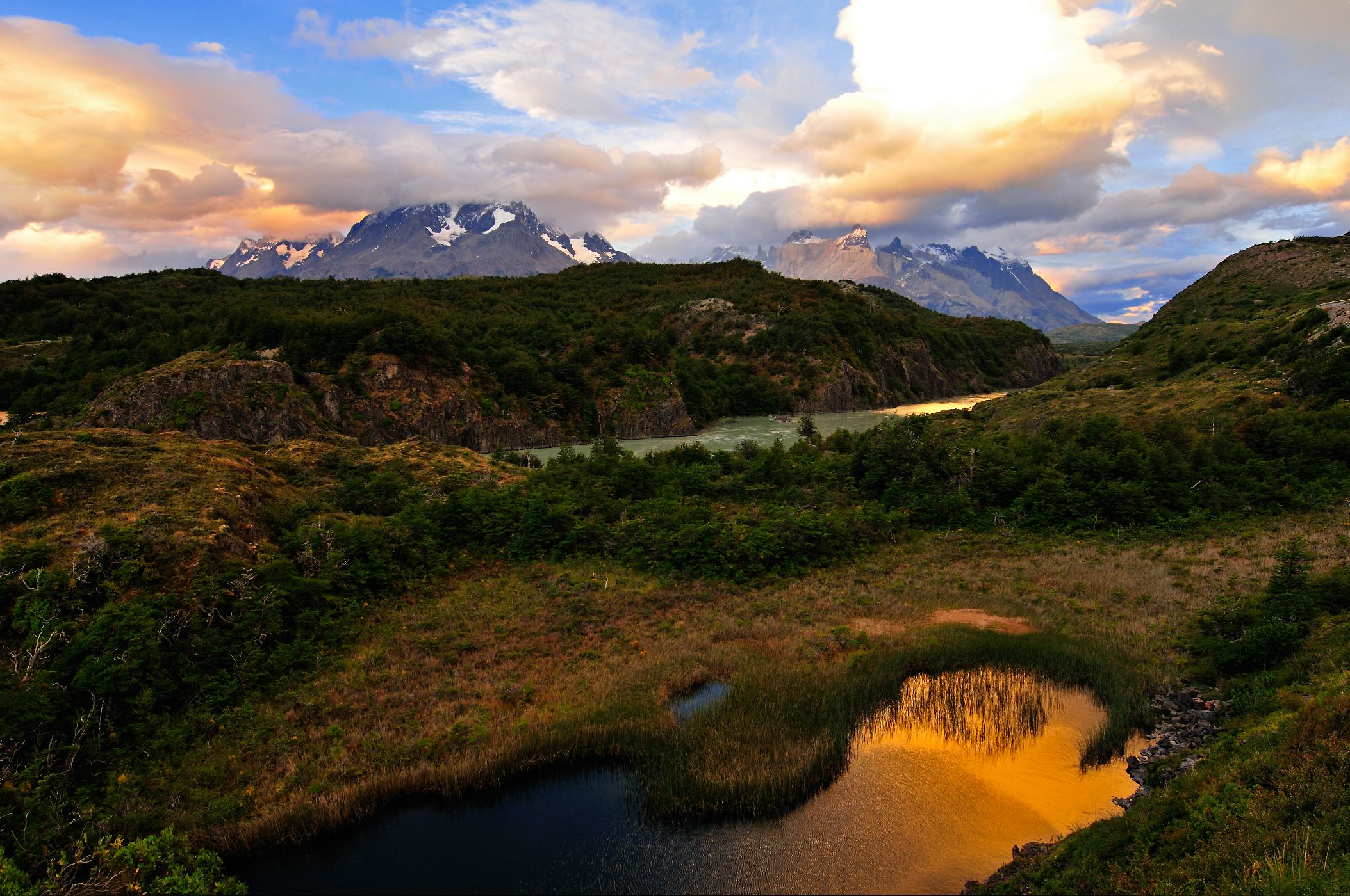 Okouzlující západ slunce nad Cuernos del Paine
