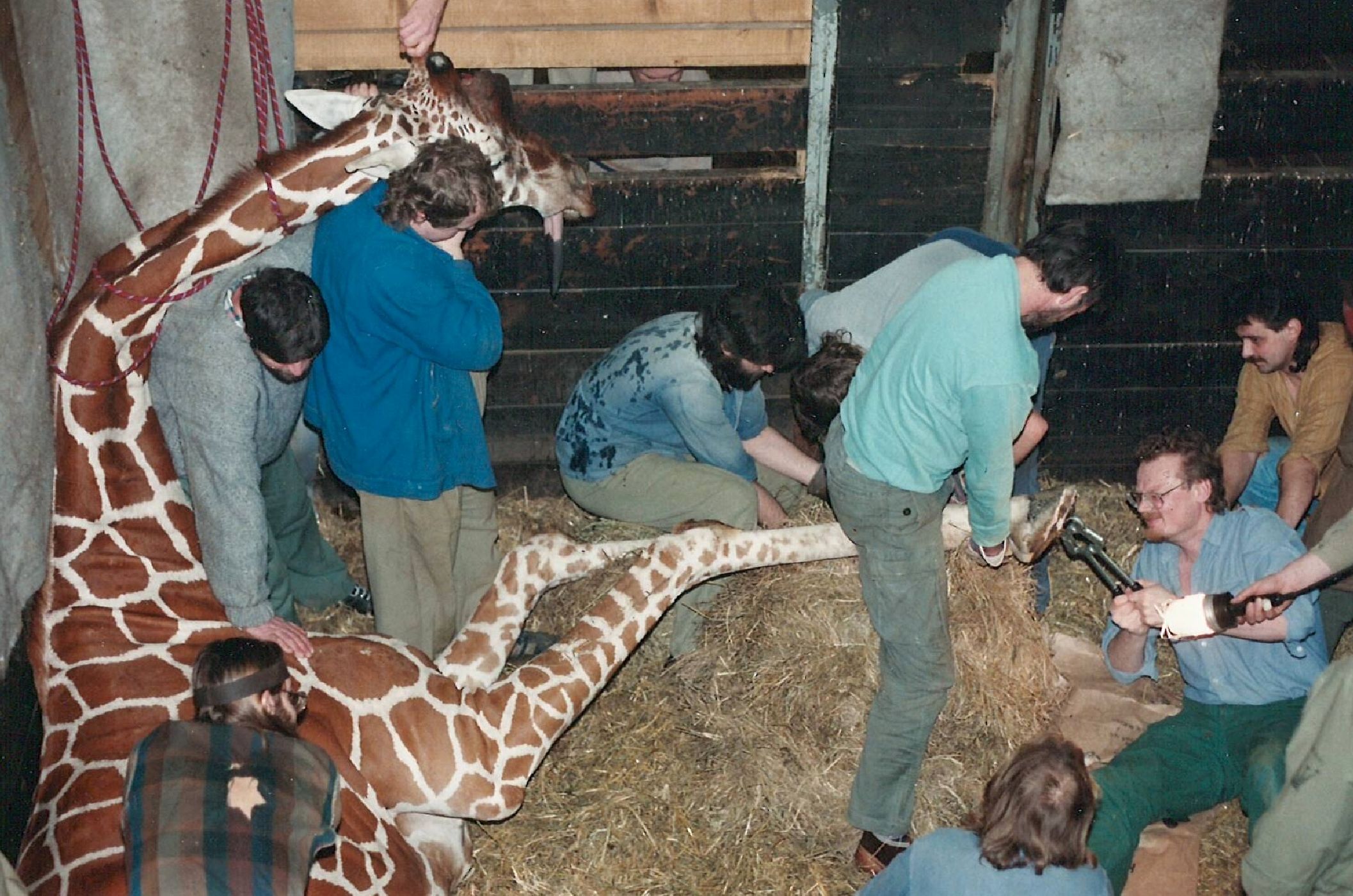 Při zastřihávání paznehtů je vždy potřeba žirafu uspat. Tato akce vyžaduje plné nasazení sehraného týmu lidí