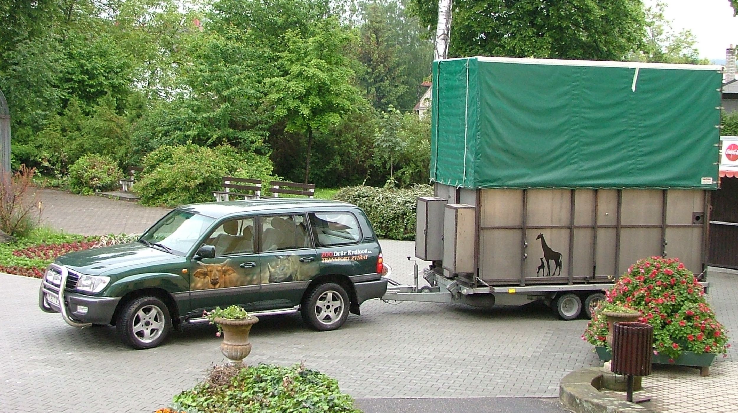 Přeprava v přívěsu není pro žirafy nijak pohodlnou záležitostí