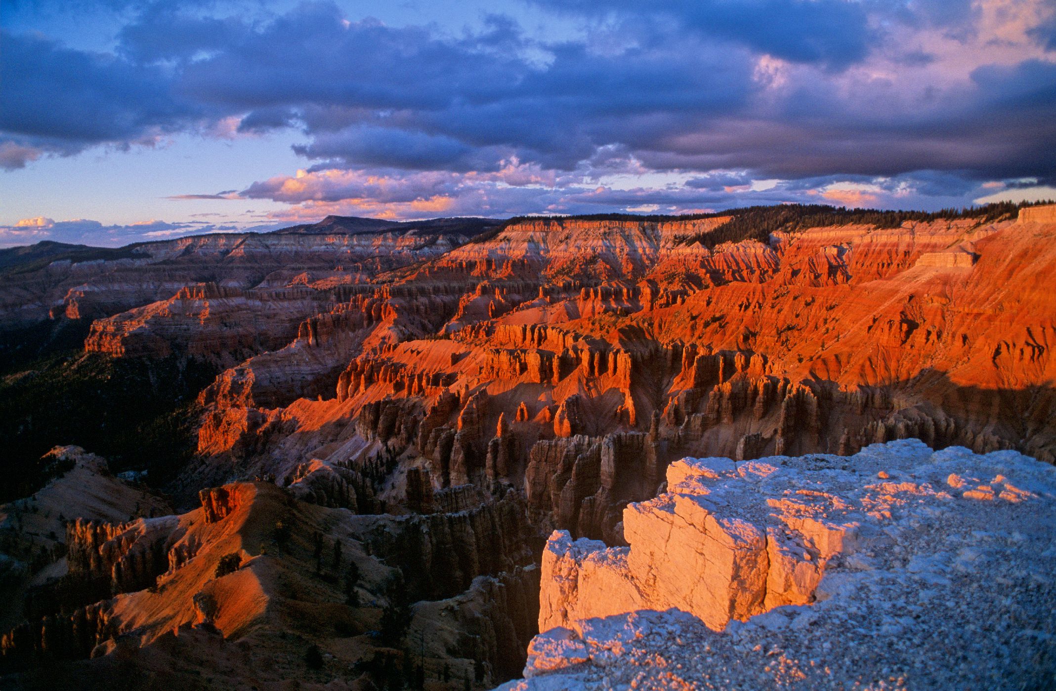 Šest set metrů hluboká kotlina Cedar Breaks má velmi strmé stěny, a proto dolů do kaňonu nevedou žádné stezky