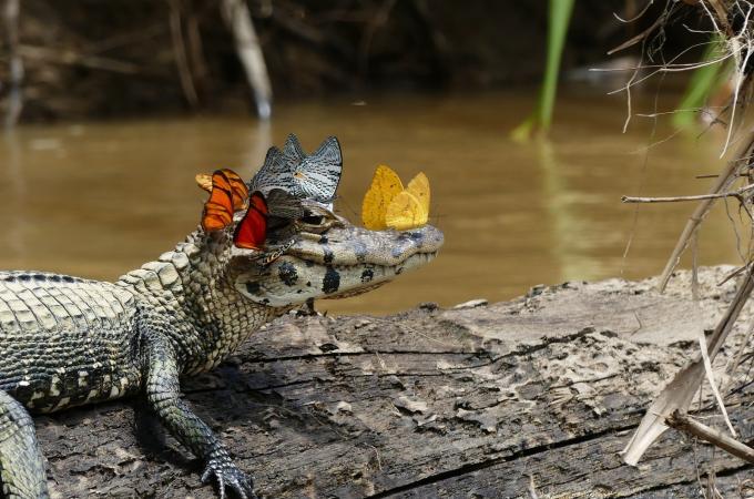 Úsměv, vyletí motýlek! Originální portrét usměvavého kajmana